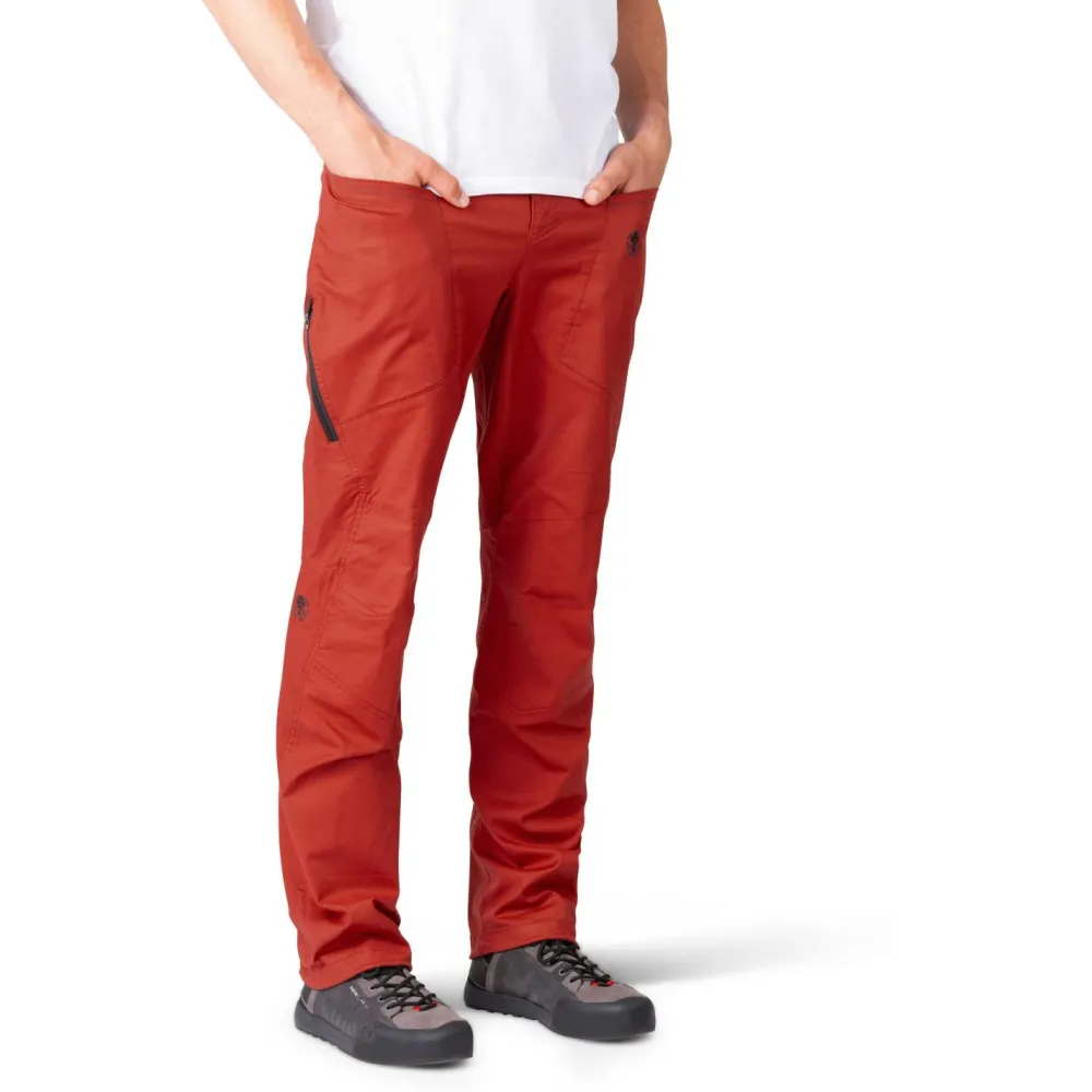Dank der Materialzusammensetzung mit Baumwolle und Elasthan ist die Hose atmungsaktiv und stretchy. Sie bietet ausreichend Flexibilität und Bewegungsfreiheit für aktive Tage in der Natur oder in der Kletterhalle. Der elastische Hüftbund engt nicht ein und schmiegt sich angnehm an den Körper an. Dank der elastischen Beinabschlüsse kann die Hose individuell angepasst werden und verrutscht beim Klettern nicht. Eine Kletterhose, die mit Funktionalität und Komfort überzeugt – die Crag von Rafiki.