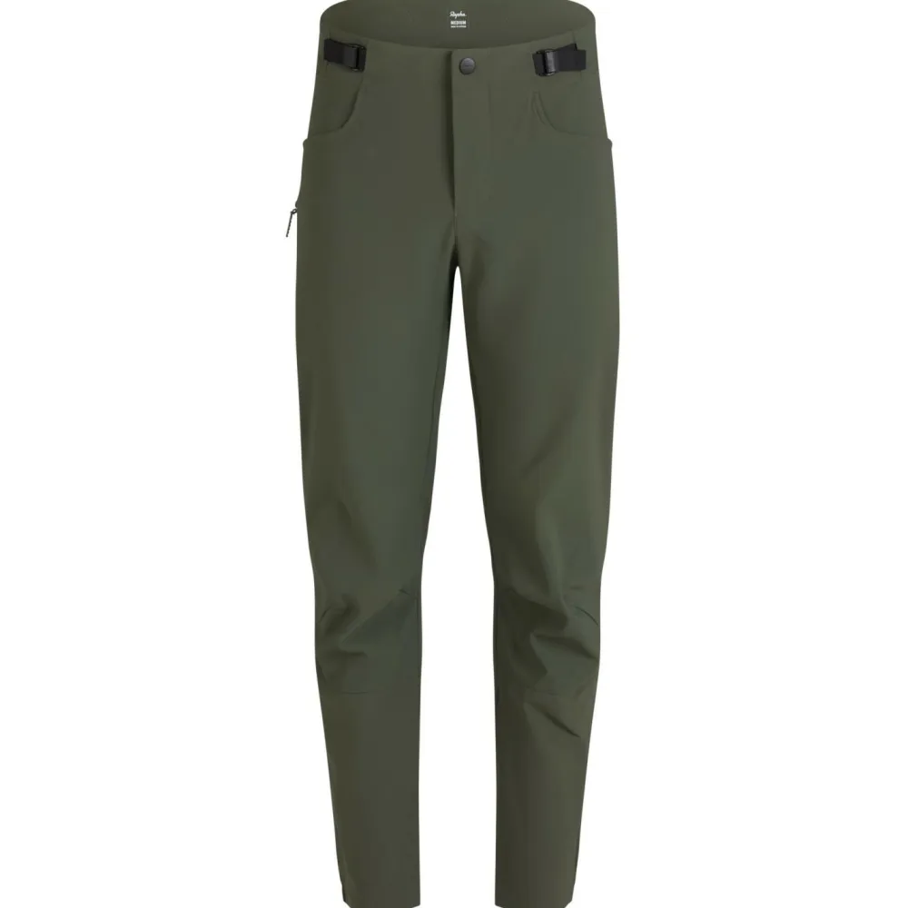 Mit der Rapha Trail Pants bist Du auf anspruchsvollen Mountainbike-Touren bestens ausgestattet. Der verstellbare Hüftbund sorgt dafür, dass die Hose immer optimal sitzt und sich Deiner Körperform anpasst – auch wenn es mal ruppig wird. Elastische Beinabschlüsse verhindern, dass Stoff in die Kette gerät oder am Rad schleift, was besonders auf technischen Trails ein echter Vorteil ist. Der Front-Reißverschluss mit praktischem Druckknopf macht das An- und Ausziehen unkompliziert und gibt Dir sicheren Halt, damit Du Dich voll aufs Fahren konzentrieren kannst.