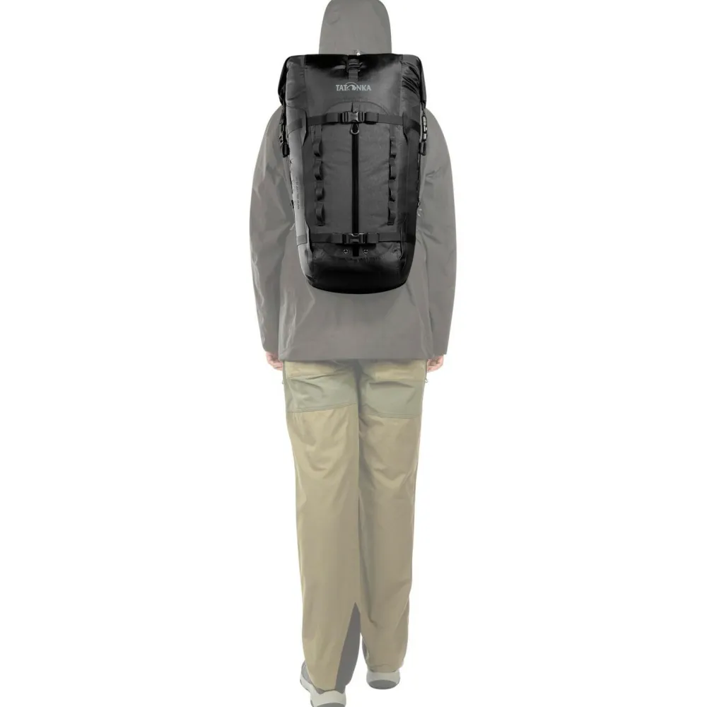 Mit dem Rapid Rolltop 35 WP der Outdoor-Spezialisten von Tatonka bist Du bestens ausgestattet, sei es auf Reisen, im Alltag, oder bei verschiedenen Outdoor-Abenteuern. Die gepolsterten Schulterträger und der höhenverstellbare Brustgurt sorgen für individuell einstellbaren, optimalen Sitz des Rucksacks, und das 420 Denier starke Cordura ist äußerst strapazierfähig und macht richtig viel mit. Außerdem wurde dem Gewebe eine PFC-freie Imprägnierung spendiert, sodass auch leichter Regen oder kurze Schauer Dir den Spaß am Draußensein nicht verderben können. Mit einem großzügigen Volumen von 35 Litern bietet das feine Teil genug Stauraum für Wanderungen, Tagesausflüge und Alltag, und dank Materialschlaufen, zweier elastischer Seitenfächer außen und einem mit einem Reißverschluss gesicherten Frontfach ist der Rucksack richtig vielseitig verwend- und bestückbar. Und wenn Du nicht das gesamte Volumen nutzen möchtest, lässt sich dieses mit den Kompressionsriemen regeln. Vorbildlich!