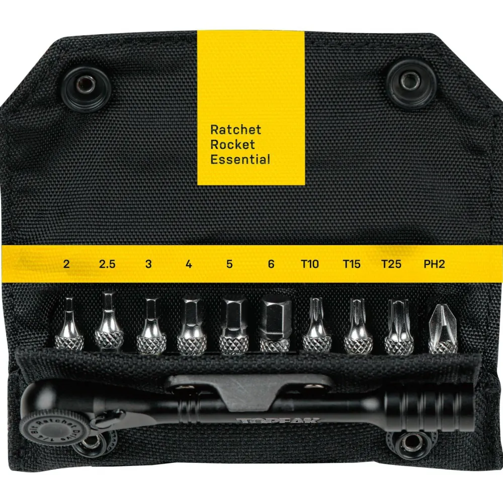 Das Ratchet Rocket Essential Fahrradwerkzeug von Topeak besteht aus Aluminium und punktet daher mit einem extrem geringen Gewicht. Die umschaltbare Feinzahnratsche mit Daumenrad und magnetischer Bitsicherung kombiniert Technik der Stahlversion mit leichtem Aluminium für präzises Schrauben. Inklusive 10 Werkzeugbits und Transporttasche.