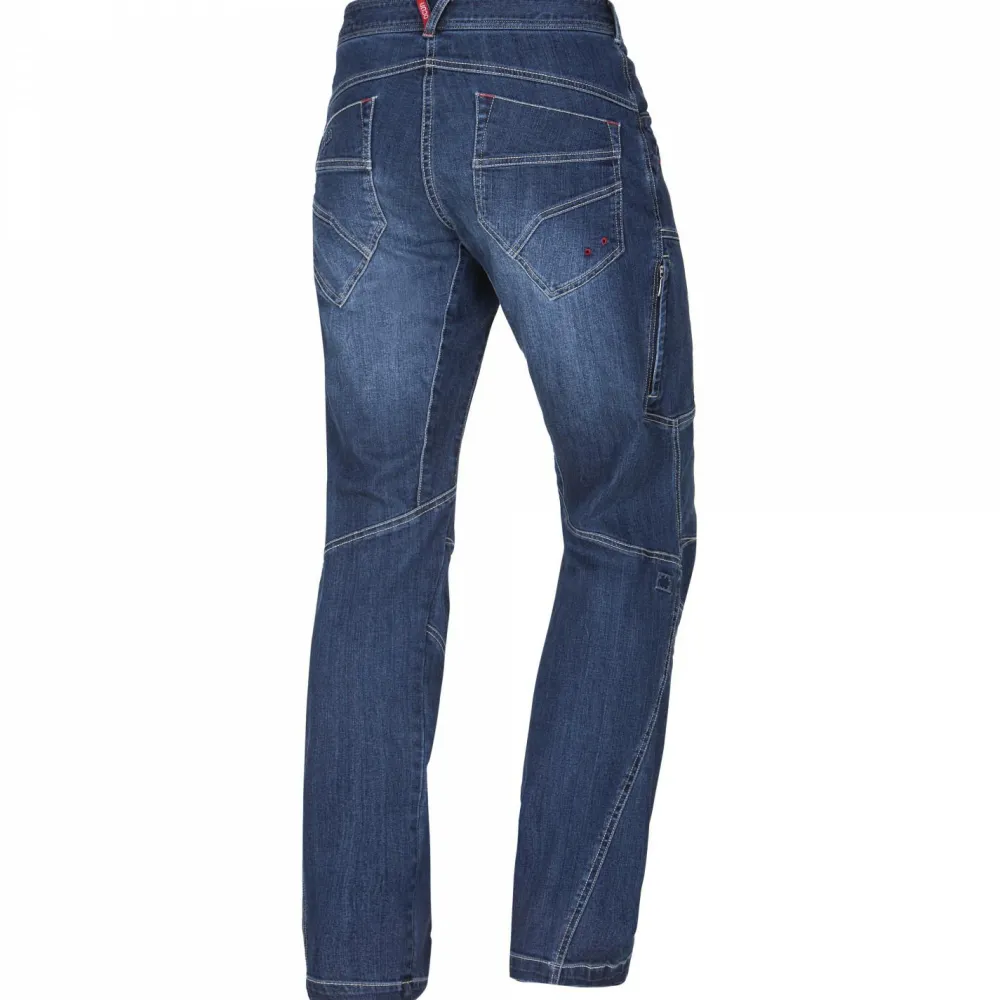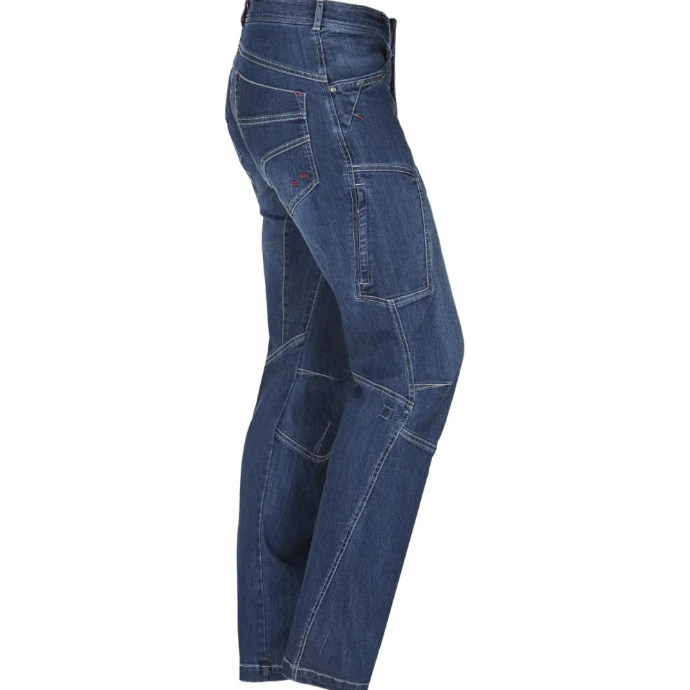 Mit dieser Jeans ist man gut beraten, wenn man z.B. direkt nach dem Klettern direkt einen Ausflug in die Stadt machen möchte, ohne sich vorher umziehen zu müssen. Die Hose ist mit vielen Taschen ausgestattet, die Platz fürs Handy und andere kleine Ausrüstungsteile bieten. Der Tragekomfort ist durch das 4-Wege-Strech-Material aus elastischem Denimstoff gesichert. Der Bund ist mit Gürtelschlaufen ausgestattet. Um uneingeschränkte Bewegungsfreiheit zu gewährleisten, hat die Jeanshose einen speziellen 3D-Schnitt im Knie- und Schrittbereich. Ob Fels oder Stadt, mit dieser Hose ist man bestens ausgerüstet.