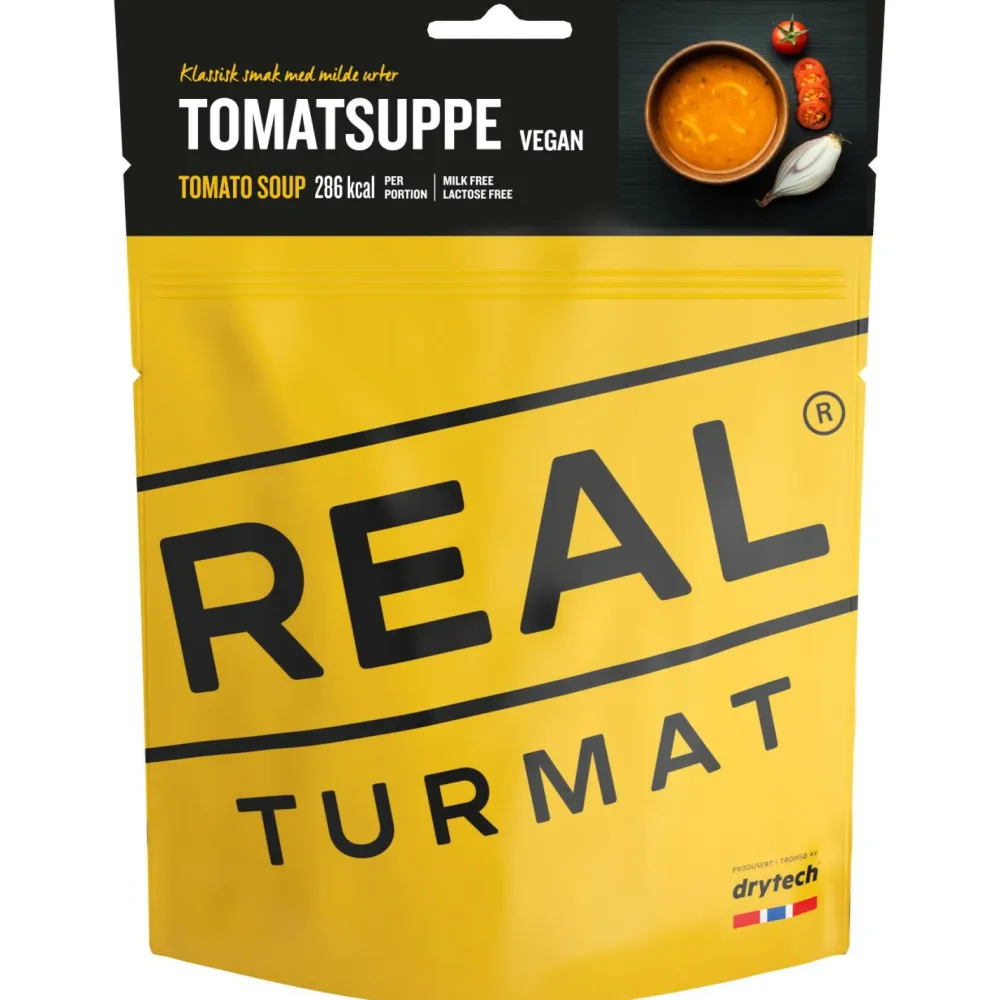 Mit der Trekkingnahrung Real Turmat Tomato Soup kannst Du Dir unterwegs auf Deinen Outdoorabenteuern eine leckere Suppe machen. Dazu öffnest Du den Beutel an der oberen Kante des Beutels an der Reißmarkierung. Dann fügst Du warmes Wasser bis zur Füllmarkierung hinzu und rührst um. Danach schließt Du den Beutel mit dem Verschluss und lässt das Ganze 8 Minuten ziehen. Guten Appetit!