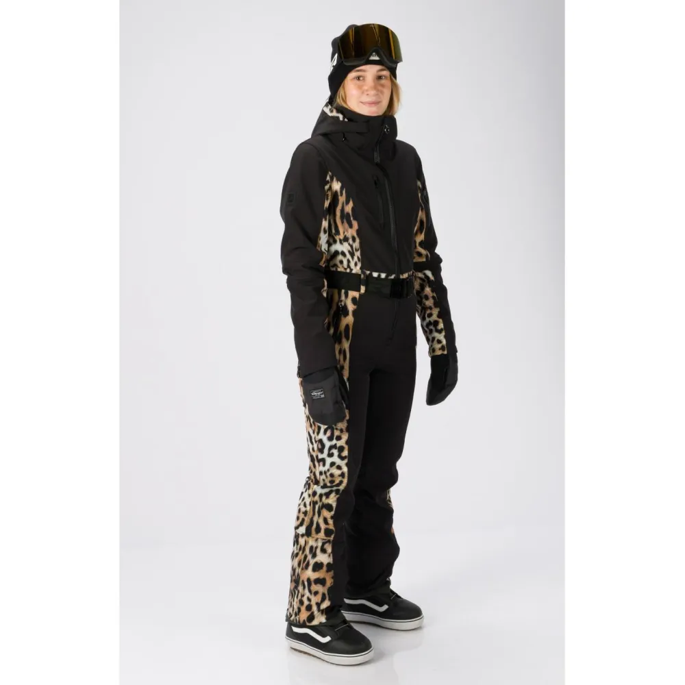 Stretchy, warm und wetterfest – der Women’s Teddie Overall von Rehall stellt sich im Skigebiet jeder sportlichen Herausforderung. Dabei begeistert der Ski-Overall durch seine tolle Passform und einen femininen Schnitt mit elegantem Gürtel an der Taille. Für erstklassige Bewegungsfreiheit sorgt ein spezielles Softshell-Gewebe, das mit 12% Elasthan besonders stretchy ist. Gleichzeitig ist der Overall warm gefüttert und widersteht einer 15000 mm Wassersäule mühelos. Die Kapuze ist bereits in den hohen Kragen integriert und lässt sich je nach Bedarf herausziehen oder im Kragen verstauen. Praktische Fronttaschen, Gesäßtaschen sowie Brusttasche und Liftpasstasche ergänzen die praktische Ausstattung des Rehall Wintersport-Overalls.
