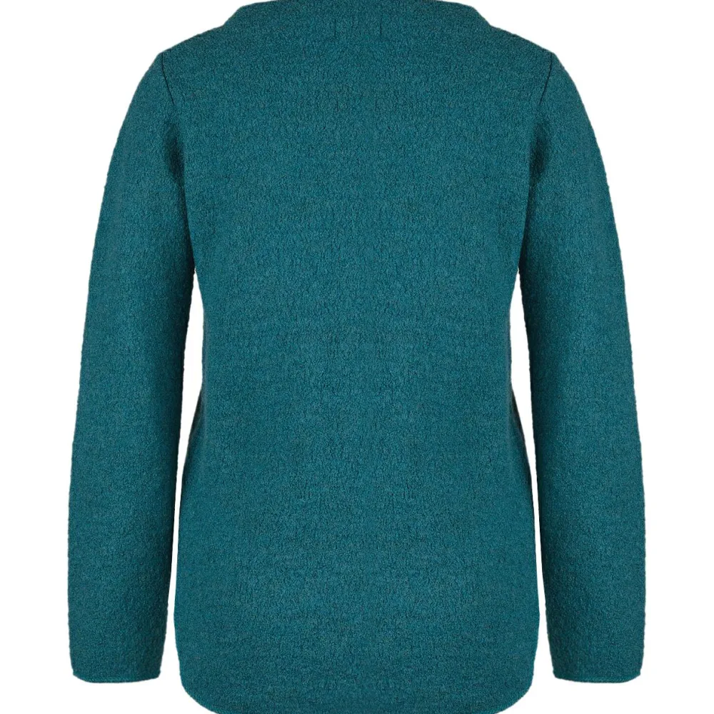 Für die kalten Tage gemacht: der Women’s Krepp-Pulli Frieda von Reiff! Er besteht zu einhundert Prozent aus Schurwolle und gibt daher schön warm. Darüber hinaus bringt er atmungsaktive Eigenschaften mit sich, sodass man mit dem Pullover gut und gerne auch etwas aktiver werden kann an winterlichen Tagen. Er trägt sich super angenehm am Körper. Außerdem kommt er mit einem verlängerten Rücken, sodass er empfindliche Nierenbereich schön warm bleibt. Perfekt in Kombination mit der Lieblingsjeans!