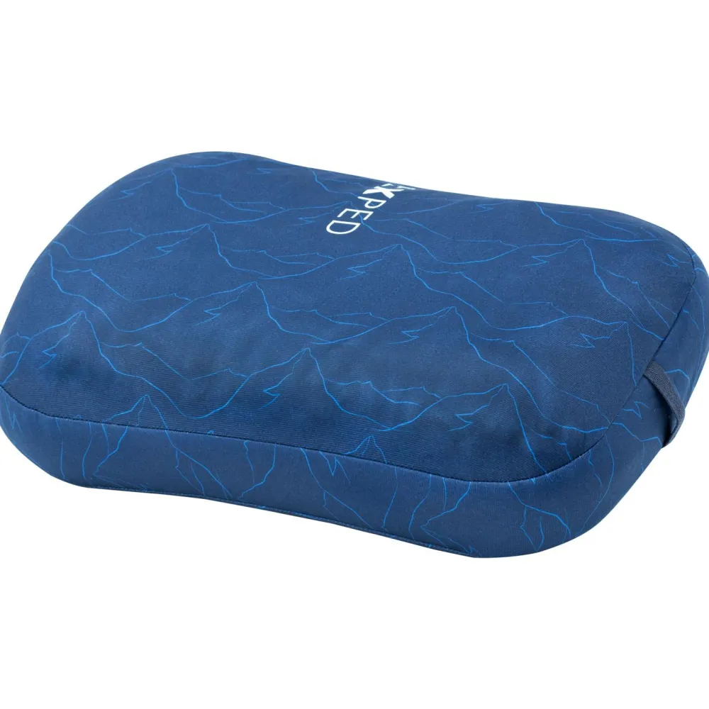 Nomen est omen: Mit dem Rem Pillow von Exped fällt man problemlos in die Tiefschlafphase, da es so bequem ist. Das mit Schaumstoffflocken gefüllte Kissen kann je nach Wunsch mehr oder weniger stark aufgeblasen werden. Dazu und zum Ablassen der Luft dient das Kombiventil mit Rückschlagkalappe und Ablass-Pin. So kann man nicht nur die Härte und Höhe seines Kissens regulieren, sondern es auch rasch entlüften für den Transport bei der nächsten Etappe. Hülle und Luftkern sind trennbar. Das erleicht das Waschen und bei Bedarf auch die Reparatur.