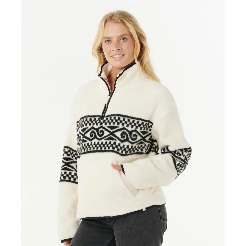 Der Women’s Oceanic Cosmic Kiss Polar von Rip Curl eignet sich für jeden Tag in Deiner Freizeit. Er ist atmungsaktiv und schnelltrocknend. Mit dem halblangen Front-Reißverschluss kannst Du ihn flexibel tragen. Der Stehkragen schmiegt sich angenehm an Deinen Hals an und bietet Dir Wärme. Die beiden Seitentaschen eignen sich hervorragend, um Deine Hände zu wärmen. Mit dem Boho-Look fällt er sofort ins Auge. Du kannst den Fleecepullover zur Jeans, aber auch zur Freizeithose kombinieren.