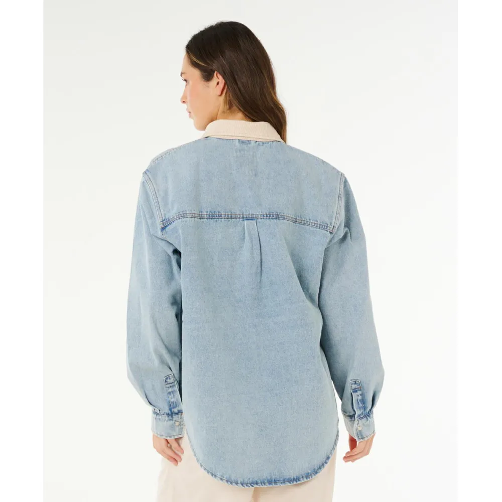 Mit dem Women’s Surf Side Relaxed Denim Shirt Hemd von Rip Curl aus robustem Jeans-Stoff siehst Du richtig lässig aus. Dank des oversized Schnitts behältst Du Deine komplette Bewegungsfreiheit. Du kannst es im Sommer einfach schnell überwerfen, wenn es abends kühl wird. Mit dem Kontrast-Kragen aus hellem Cord-Stoff ist das Women’s Surf Side Relaxed Denim Shirt Hemd ein richtiger Hingucker.