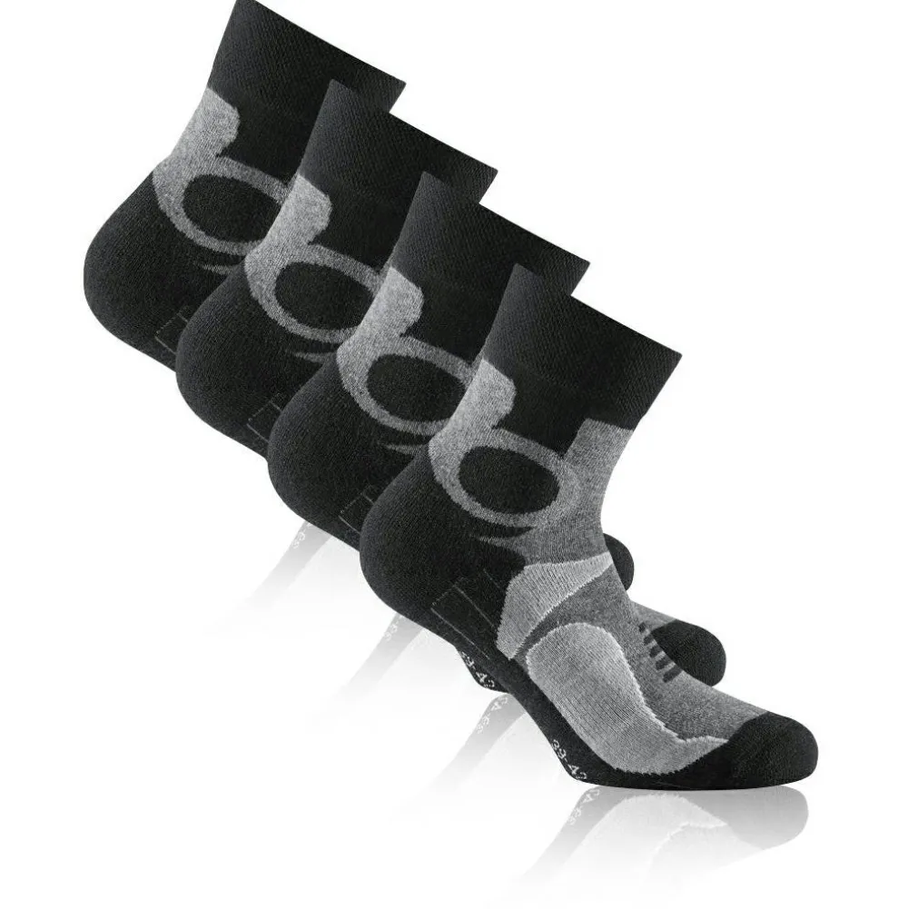 Schluss mit Blasen an den Füßen! Mit den Basic Trekking Quarter 2er Pack von Rohner hast Du Trekkingsocken, die genau an den richtigen Stellen gepolstert sind. So hast Du in Deinen Wanderschuhen den maximalen Komfort und kannst mit ihnen ganze Tage in Dein nächstes Outdoor-Abenteuer starten. Sie bestehen aus einem Baumwoll-Woll-Kunstfaser-Mischgewebe und fühlen sich nicht nur gut an, sondern sorgen auch für eine entsprechende Feuchtigkeitsregulierung.