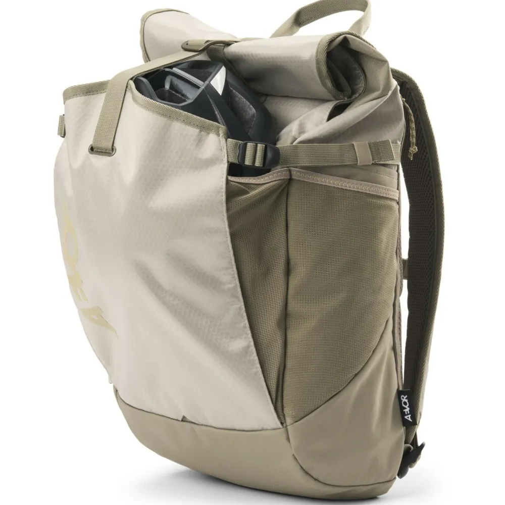 Im Roll Pack 20 von AEVOR bringst Du alles unter, was Du für einen Tag so brauchst. Egal ob Du mit dem Bus, der U-Bahn oder mit Deinem Rad durch die Stadt fährst, der robuste Rucksack macht jedes Abenteuer mit. Er ist aus abriebfestem Material gefertigt, das ihn besonders strapazierfähig und langlebig macht. Im großen Hauptfach, im Laptopfach und in den Seitentaschen bringst Du alles geordnet unter. Dank Rollverschluss kannst Du alles kompakt verstauen und der Inhalt bleibt ganz gut vor Nässe und leichtem Regen geschützt. Dank gepolsterter Schulterträger liegt der Rucksack angenehm auf.