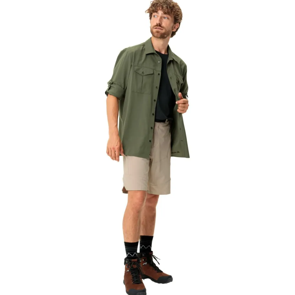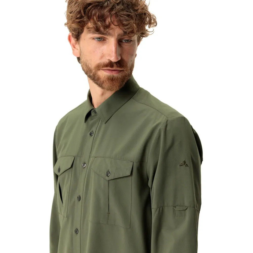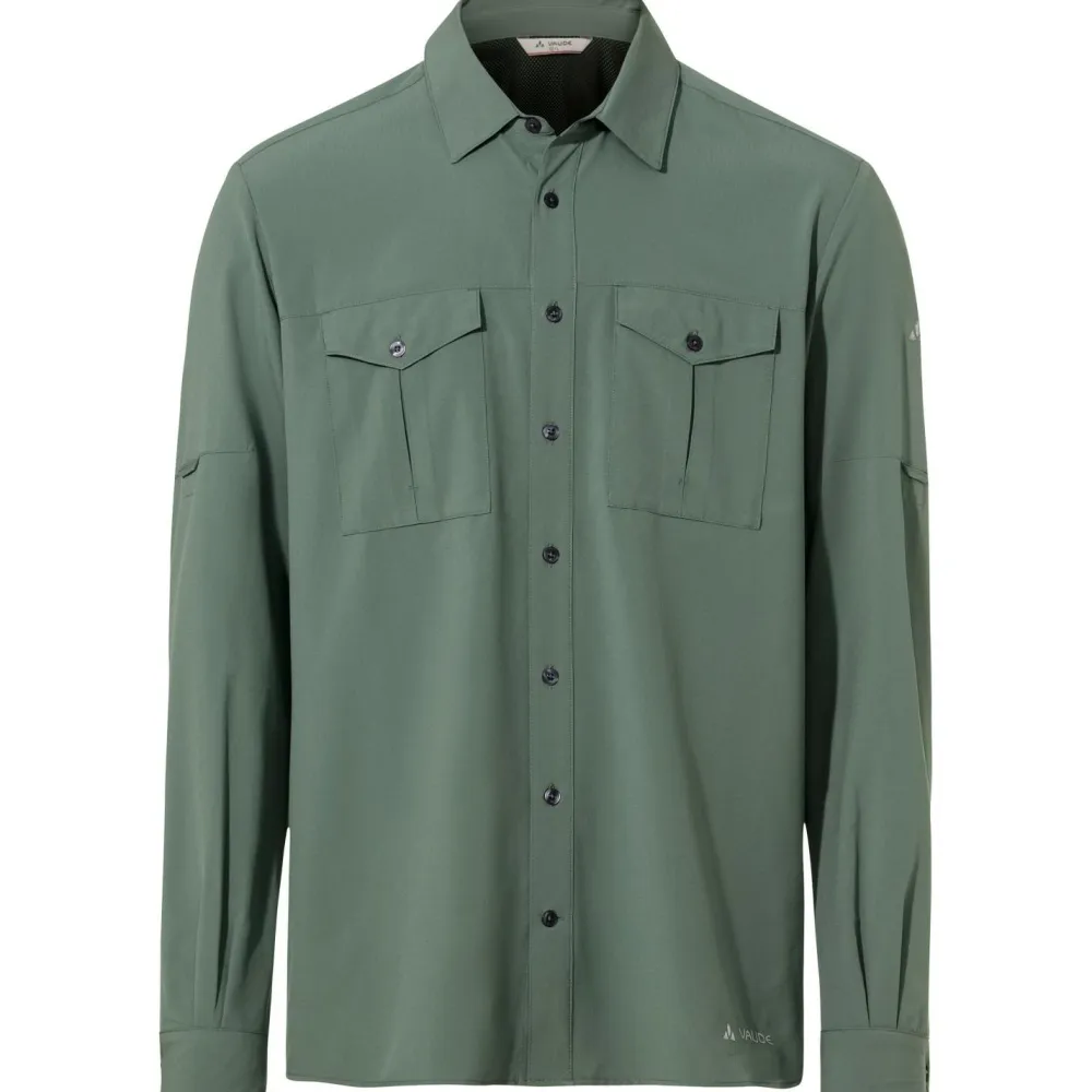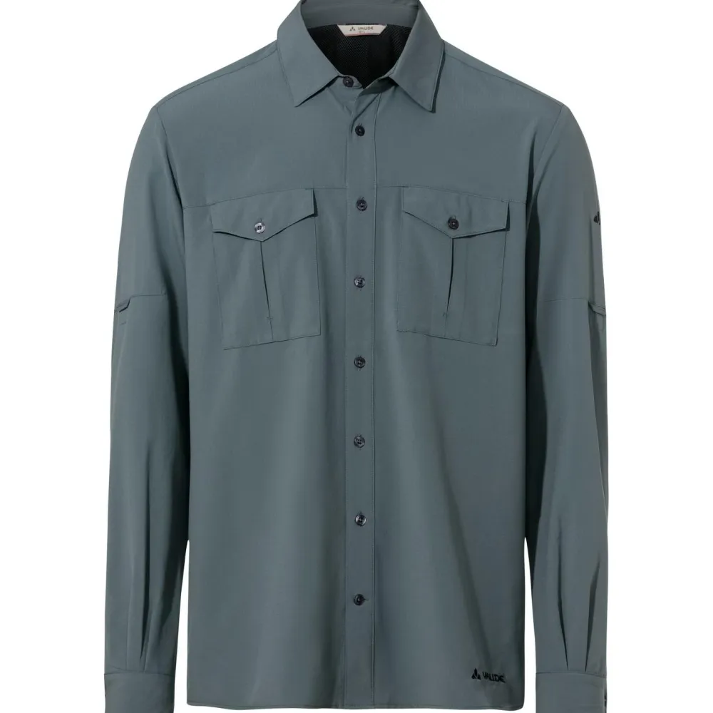 Das umweltfreundliche Rosemoor L/S Shirt II Hemd von Vaude besteht zu großen Teilen aus recyceltem Polyester und ist mit dem Green Shape Label ausgezeichnet. Beim Trekking und Wandern überzeugt das leichte Hemd durch angenehme Atmungsaktivität und hohen UV-Schutz. Gleichzeitig schützt das Hemd vor Mücken. Das Rosemoor L/S Shirt II Hemd ist mit einer durchgehenden Knopfleiste ausgestattet und verfügt über zwei praktische Brusttaschen. Bei höheren Temperaturen lassen sich die Ärmel aufrollen und das Vaude Hemd wird zum funktionellen Kurzarmhemd.