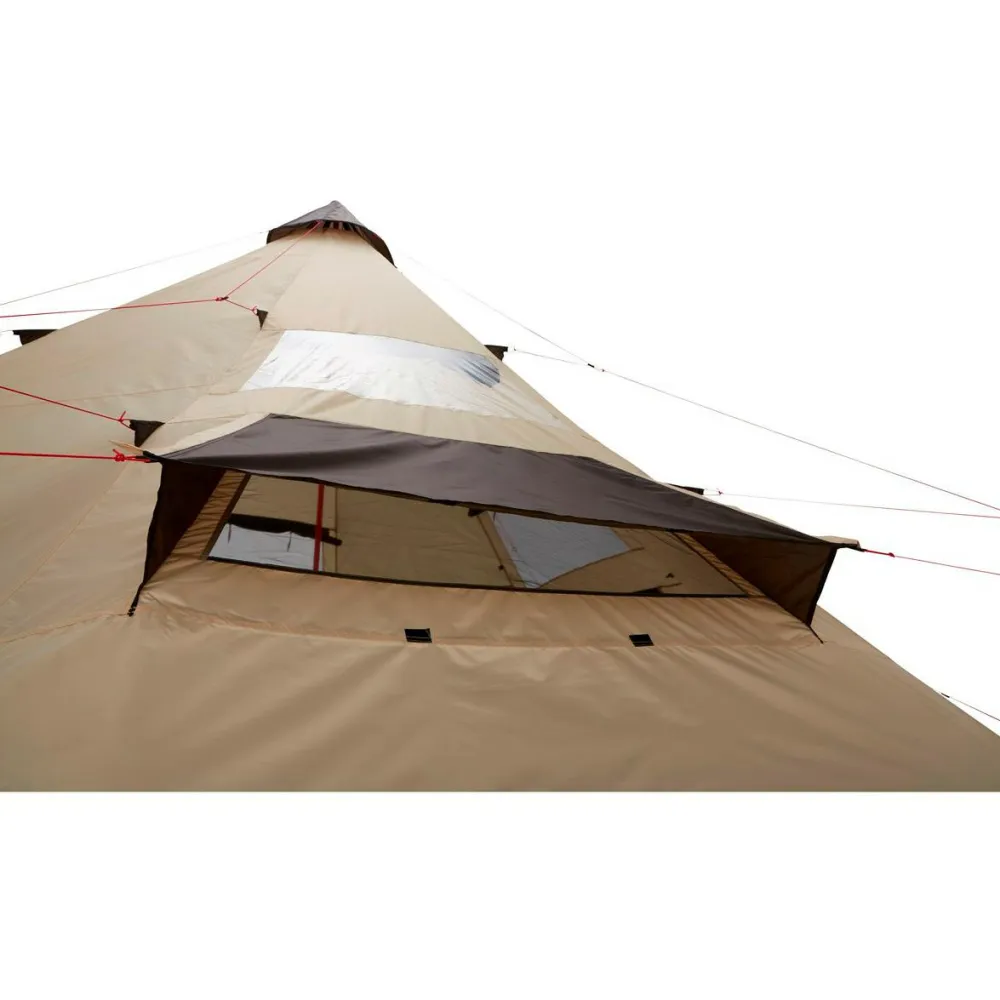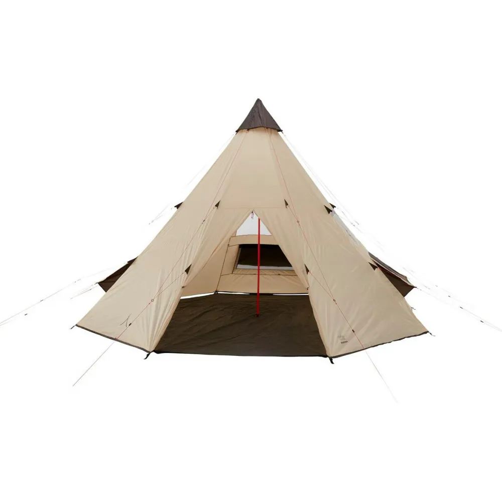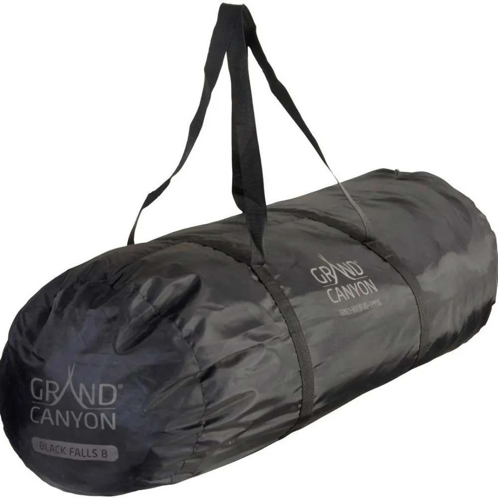 Die traditionelle Konstruktion wird von stabilen Zeltstanden aus Stahl getragen. Auch die stabilen Zeltheringe bestehen aus Stahl. So lässt sich das Zelt in Verbindung mit den reflektierenden Abspannleinen zügig und sicher aufstellen. Mit 9 kg Gesamtgewicht und 22 x 73 cm Packmaß lässt sich das riesige Zelt gut zum Zeltplatz oder Campingplatz transportieren. Das Black Falls 8 überzeugt durch gute Ventilation, einen großen Eingang und angenehme Stehhöhe. Seitliche Fenster mit Moskitonetzen machen das Gruppenzelt komplett.