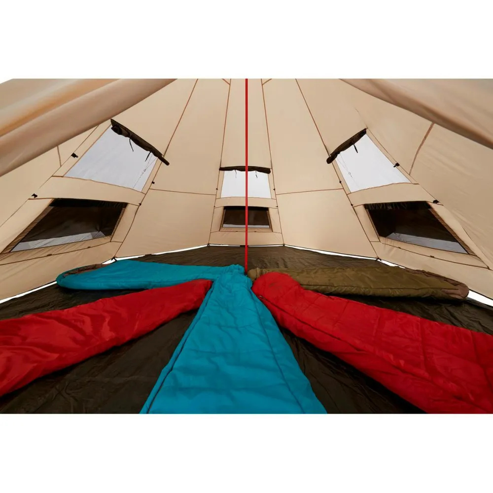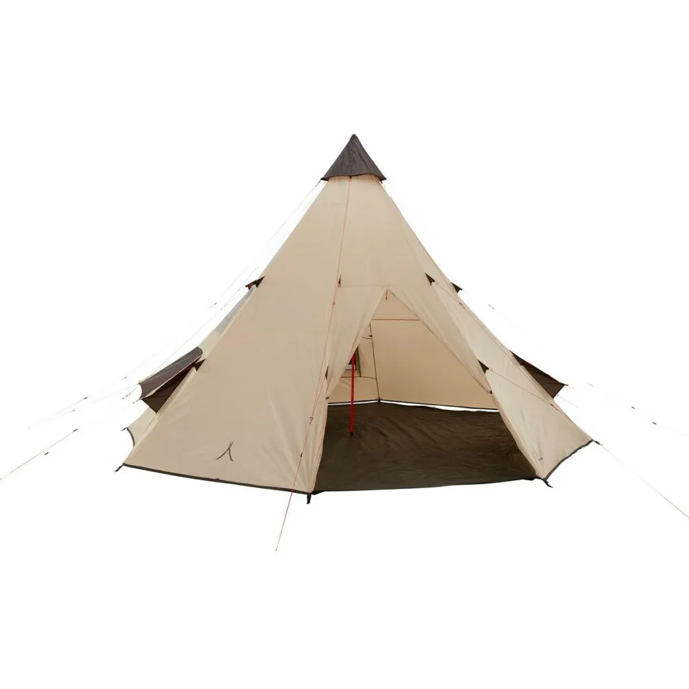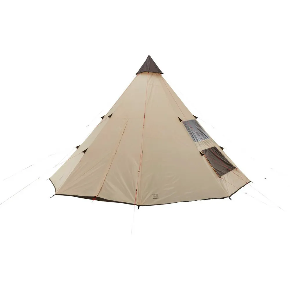 Mit einem Durchmesser von 500 cm und 300 cm Höhe im Zentrum bietet das Black Falls 8 Gruppenzelt von Grand Canyon eine Menge Patz. Das Tipi ist so konstruiert, dass bis zu acht Erwachsene bequem Platz zum Schlafen, Liegen und Sitzen finden. Natürlich ist auch genügend Raum für die entsprechende Ausrüstung und eine Menge Gepäck vorhanden. Grand Canyon fertigt das moderne Großraum-Tipi aus strapazierfähigem 68D 190T Polyester und sorgt mit einer zusätzlichen PU-Beschichtung für sehr guten Wetterschutz. Einer 3000 mm Wassersäule hält das geräumige Zelt mühelos stand. Gleichzeitig bietet der Polyethylen Zeltboden auch auf der Unterseite besten Schutz vor Regen und Nässe.