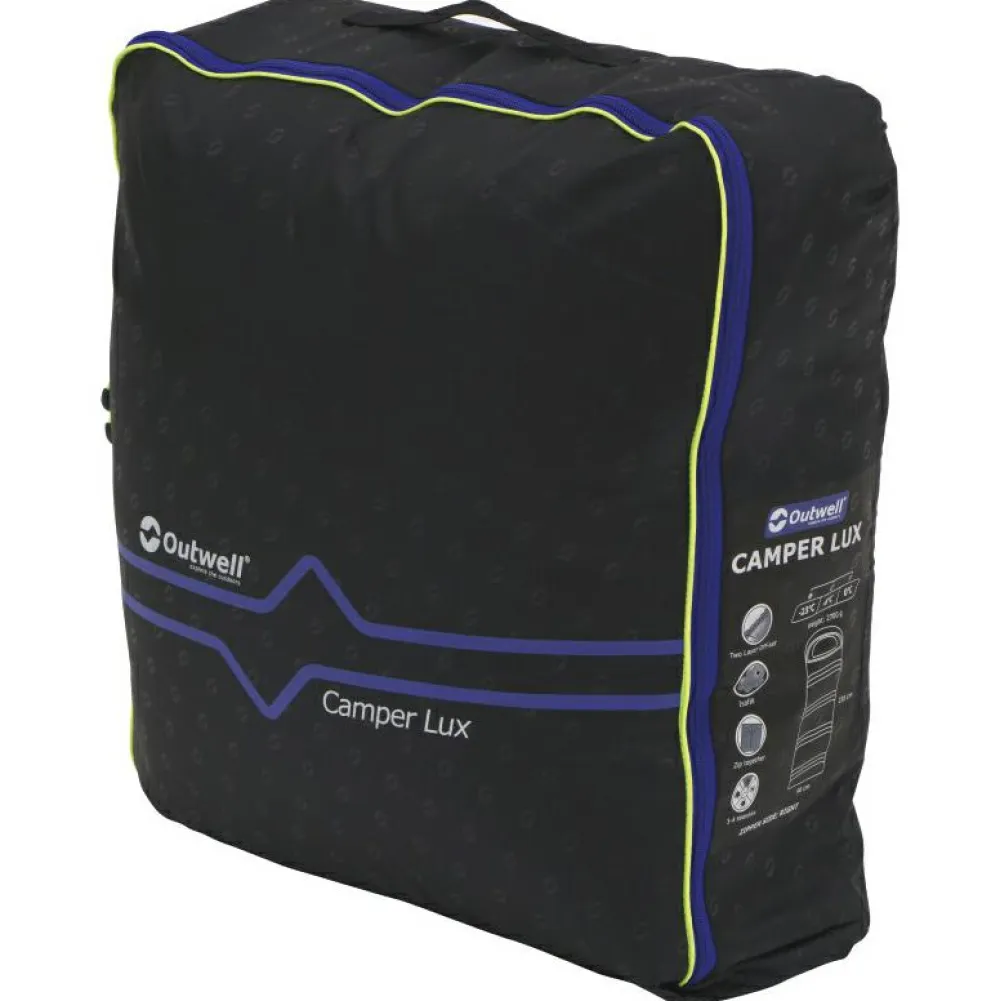 Beim Kunstfaserschlafsack Camper Lux von Outwell ist der Name Programm! Er ist der ideale Partner für komfortable Campingausflüge mit dem Van oder Zelt. Die synthetische Wattierung hält Dich zuverlässig auf Temperatur, auch unter feuchten Bedingungen. Innen ist der Schlafsack mit Baumwolle ausgestattet, die mit guten Saugeigenschaften punktet.