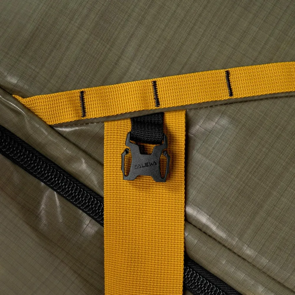 Die Discovery Duffle L von Salewa kommt mit einem erstaunlich geräumigen Innenleben daher und eignet sich für Reisen aller Art. Die hochwertigen Materialien sind sehr robust und schrecken vor unsanftem Kontakt auf dem Gepäckband am Flughafen genauso wenig zurück wie vor einem nassen Untergrund. Damit Du die Tasche komfortabel transportieren kannst, sind sowohl Tragegriffe als auch Schulterträger angebracht. Diese können mit nur einem Handgriff verstaut werden.