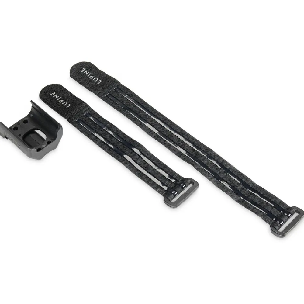Der Lupine FastClick Rahmenhalter dient zur Befestigung des Lupine FastClick Akkus Deiner Helm- oder Stirnlampe direkt am Rahmen. Ein kurzes (21 cm) und ein langes (30 cm) Klettband mit rutschfester Beschichtung sind im Lieferumfang enthalten.