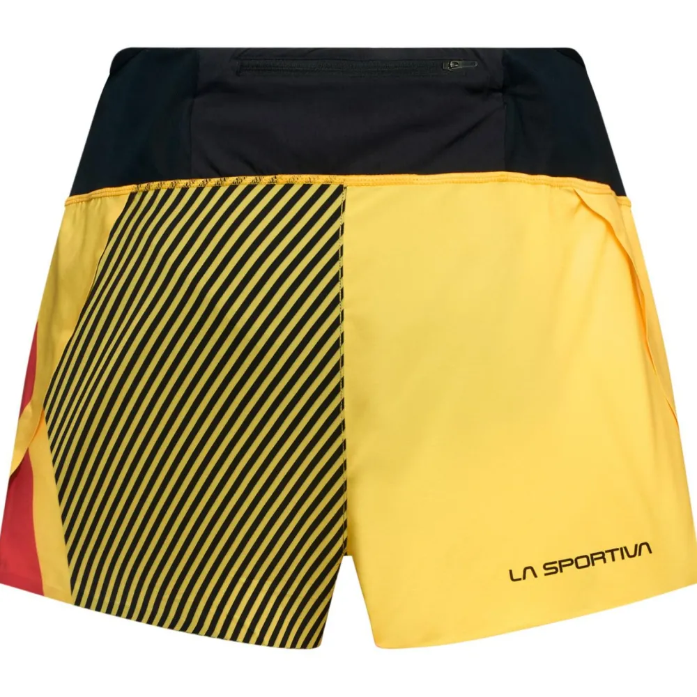 Die Flow 3 Shorts von La Sportiva besteht aus leichtem, atmungsaktivem Stretchmaterial und ist die perfekte Laufhose für Trailruns bei warmem Wetter. Ihre bequeme Innenhose bietet Halt und verklebte Nähte verhindern Scheuerstellen, während der seitliche Schlitz bei steilem Bergauf die Bewegungsfreiheit optimiert. Der breite elastische Bund sorgt für einen guten Sitz und liefert nebenbei viel Menge Stauraum dank einer großzügigen Vordertasche sowie zweier Seitentaschen, in denen Snacks und Smartphone Platz finden. Ein weiteres kleines aber feines Extra ist die Schlüsseltasche mit Reißverschluss hinten am Bund.