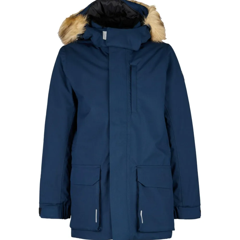 Die verstellbare Kapuze mit abnehmbarem Kunstfellbesatz bietet zusätzlichen Schutz gegen Wind und Kälte und kann bei Bedarf auch problemlos abgenommen werden. Die Jacke besitzt darüber hinaus zwei große Fronttaschen sowie eine Brusttasche mit Reißverschluss, die Stauraum für diversen Kleinkram bieten. Die verstellbaren Ärmelbündchen und der verstellbare Saum garantieren einen passgenauen Sitz und runden das komfortable Design perfekt ab. Warm und gemütlich durch die kalte Jahreszeit – mit der Kid’s Ajaton von Reima!