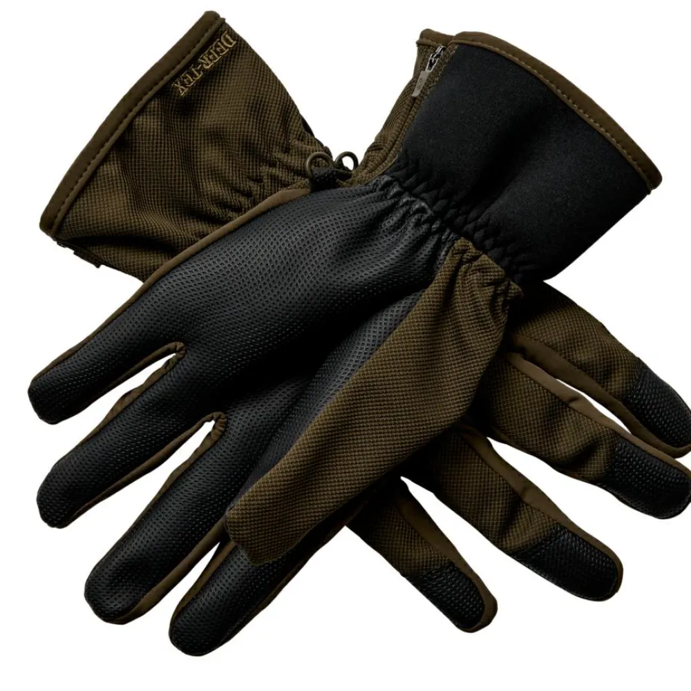 Die Muflon Pro Light Gloves von Deerhunter sind echte Allrounder. Sie sind atmungsaktiv, schnelltrocknend, wind- und wasserdicht. Die verstärkte Handfläche und verstärkte Finger aus Anti-Rutsch-Material machen sie zu echten Favoriten. Der Gummizug am Handgelenk sorgt für angenehmen Tragekomfort. Die Reißverschlussöffnung an der Seite erleichtert das An- und Ausziehen. Neopren auf der Rückseite der Manschette macht die Handschuhe zu einem echten Must-have, Das gestickte Logo ergänzt den sportlichen Look. Damit kannst Du die Handschuhe zu jedem Outdooroutfit kombinieren.