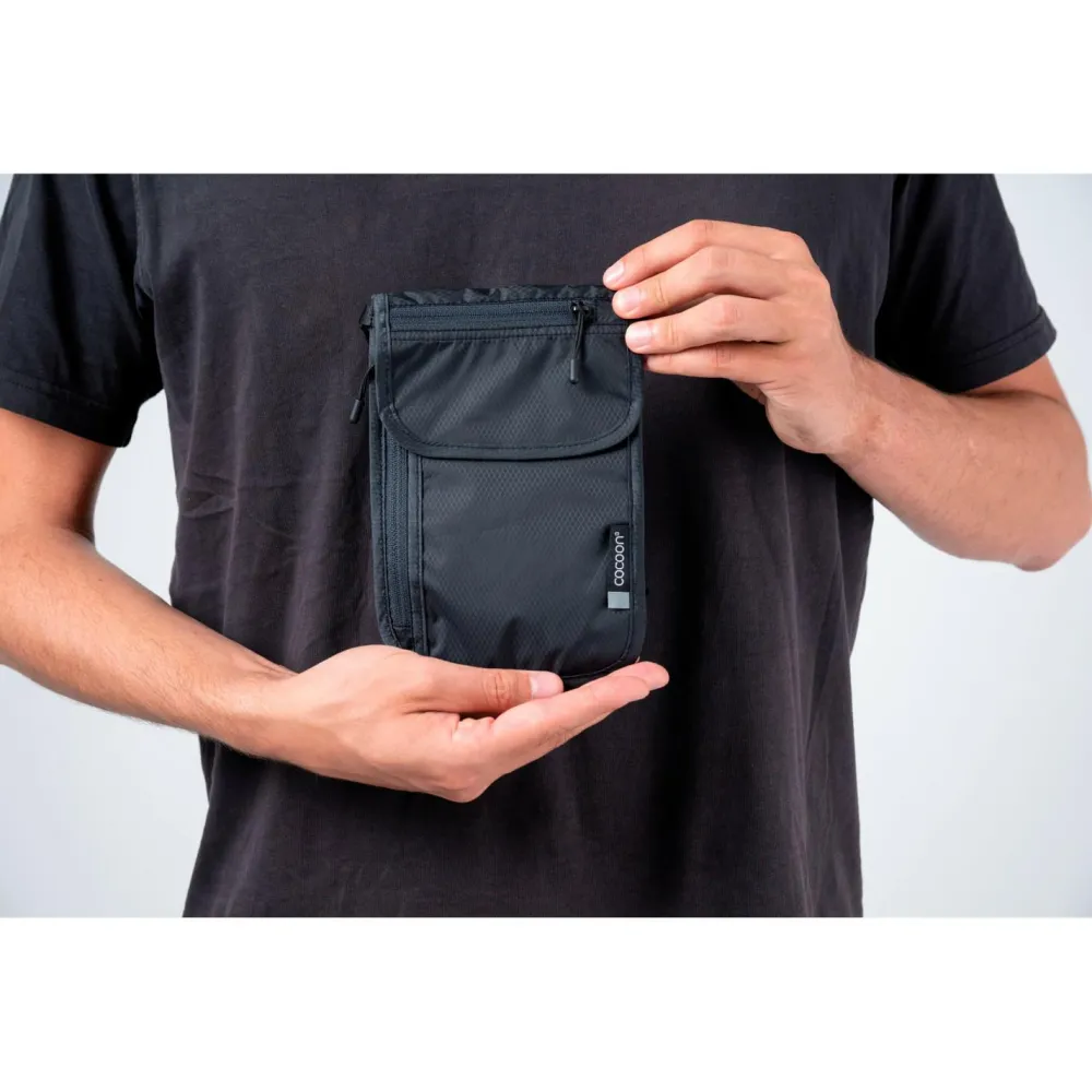 Damit Dir auf Reisen nichts abhandenkommt, gibt es den Neckwallet Light von Cocoon. Diesen Wertsachenbeutel kannst Du Dir einfach um den Hals hängen und sicher verstaut unter Deinem Shirt tragen. Er bietet dabei ausreichend Platz für Geld, Karten und Dein Mobiltelefon.