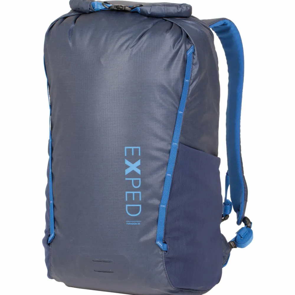 Der Exped Typhoon 25 überzeugt als leichter Wanderrucksack, der sich durch den praktischen Rollverschluss besonders komfortabel öffen und verschließen lässt.Das Außenmaterial ist mit Polyurethan beschichtet und verfügt über eine Wassersäule von 3000 mm. Abgeklebte Nähte machen das Material wasserdicht und schützen den Inhalt zuverlässig vor Feuchtigkeit. Das robuste Gewebe übersteht auch Felskontakt bei Bergtouren ohne Probleme. Zwei elastische Seitentaschen bieten Platz für Trinkflaschen. Ein Daisy Chain System auf der Rückseite erleichtert die Anbringung von Ausrüstung und Kletterhelm.Durch den abnehmbaren Hüftgurt eignet sich der vielseitige Typhoon 25 Wanderrucksack von Exped auch sehr gut als Daypack für den Alltag.