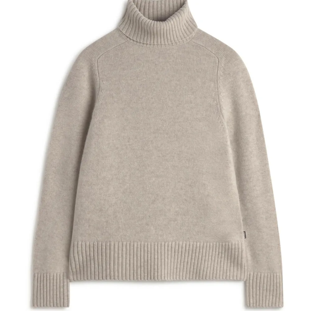 Der Rollkragen und die Rippbündchen an Saum und Ärmeln liegen schön eng an und verhindern, dass dort wertvolle Körperwärme entweichen kann. Und das beste – der Women’s Caqui Knit Wollpullover wurde zu 100 % aus recycelter Wolle hergestellt. Mit dem Kauf verhinderst Du, dass neues tierisches Material verwendet wird!