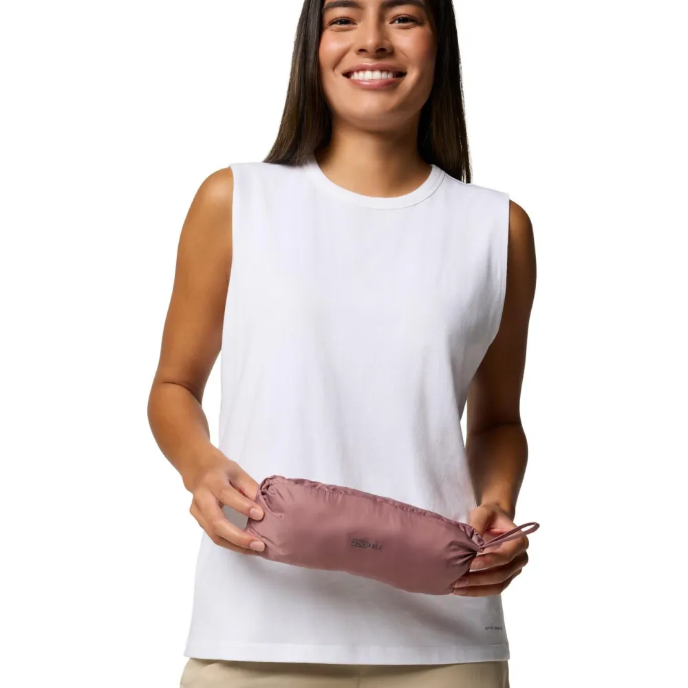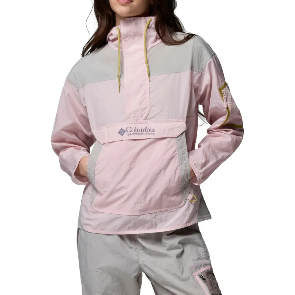Mit lässigem Design und großer Fronttasche begeistert der Women’s Challenger II Windbreaker von Columbia beim Wandern und in der Freizeit. Dabei ist die Windjacke angenehm windundurchlässig und schützt mit ihrer wasserabweisenden Omni-Shield Behandlung sehr gut bei Regen. Der Windbreaker von Columbia ist mit einer breiten Windabdeckleiste und einer großen Kängurutasche ausgestattet. Unter der frontalen Abdeckleiste ist zusätzlich ein Reißverschluss in halber Länge angebracht. Elastische Bündchen und je ein Kordelzug im Saum und in der Kapuze ergänzen die praktische Windjacke.