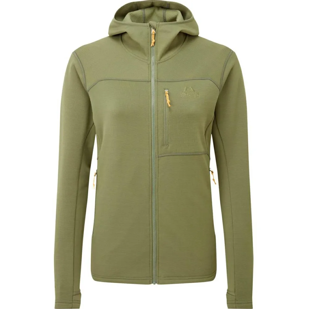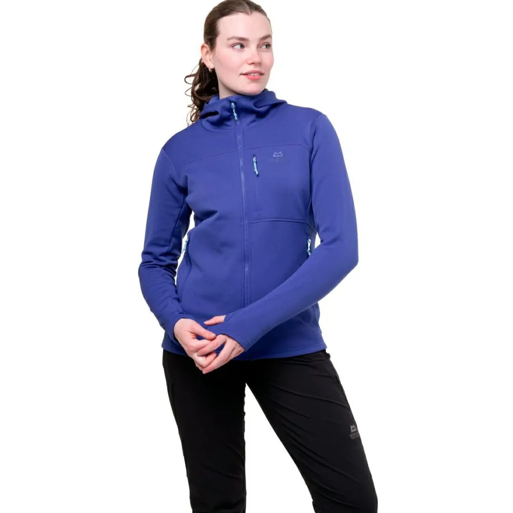 Die Women’s Durian Hooded Jacket Fleecejacke von Mountain Equipment kommt mit atmungsaktiven Eigenschaften daher und eignet sich damit hervorragend für schweißtreibende und anstrengende sportliche Einsätze. Hierbei kann feuchte Luft direkt an die Umgebungsluft abgegeben werden und es bleibt angenehm trocken. Wenn Du verschwitzt am Gipfel ankommst, sorgen die windabweisenden Eigenschaften dafür, dass Dir auch zugige Bedingungen nichts anhaben können. Auch der Kopfbereich kann jederzeit mit einer gemütlichen Kapuze vor Wind und Wetter geschützt werden.