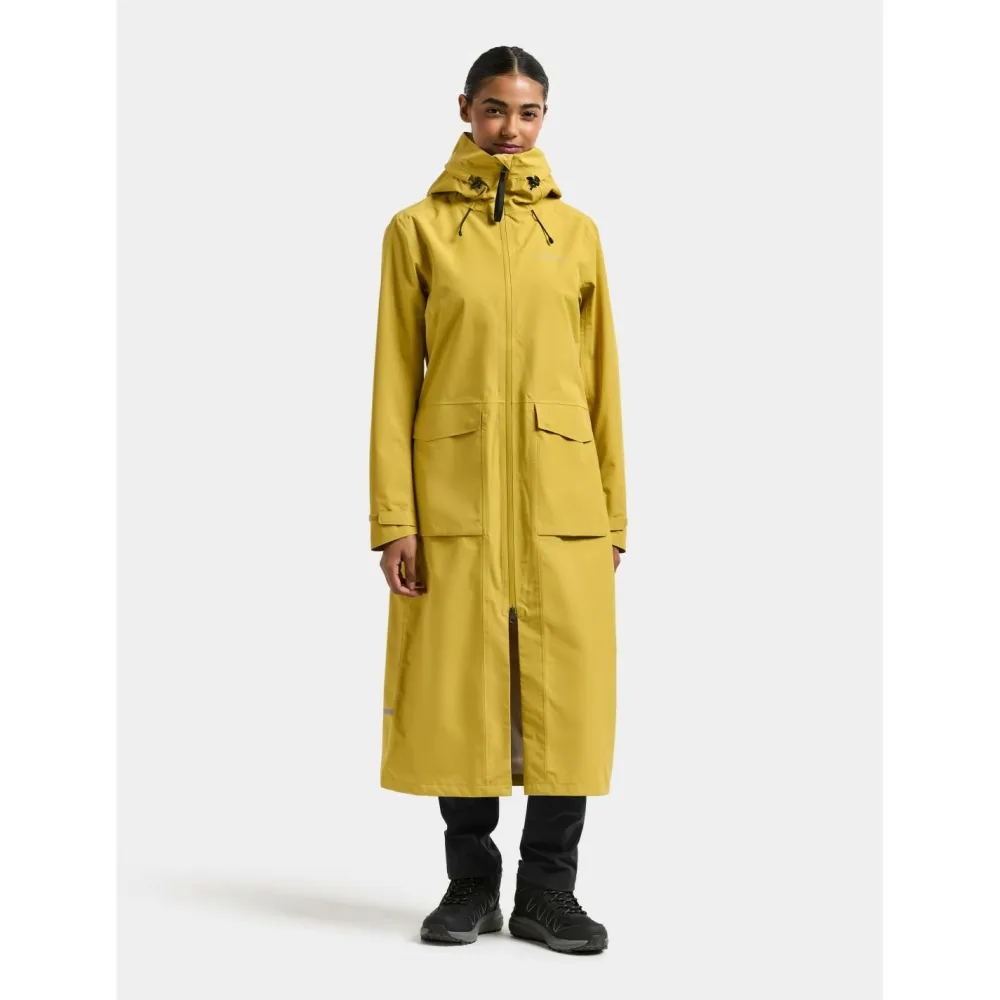 An den ungemütlichen Tagen ist der Mantel Women’s Nadja Parka 4 von Didriksons der ideale Partner! Dank wasser- und winddichter Membran liefert er einen zuverlässigen Wetterschutz. Zudem ist das Material atmungsaktiv, damit sich keine Feuchtigkeit anstaut. Mit der verlängerten Passform werden empfindliche Zonen optimal geschützt. Praktische Taschen bieten Platz für Kleinigkeiten. Mit dem Kordelzug in der Taille kannst Du die Passform variieren. Ein Allrounder für Alltag und Freizeit!