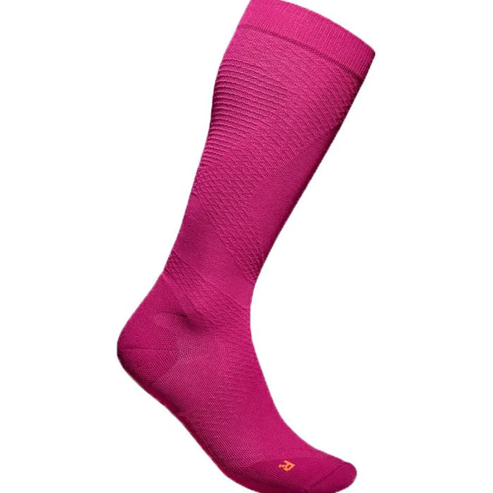Power bis zum Gipfel: die Women’s Run Ultralight Compression Socks von Bauerfeind Sports unterstützen Deine Waden mit gezielter KOmpression besonders dann, wenn die Wege steiler und das Gelände schwieriger werden. Die Socken sind leicht, komfortabel und haben eine hohe Atmungsaktivität.