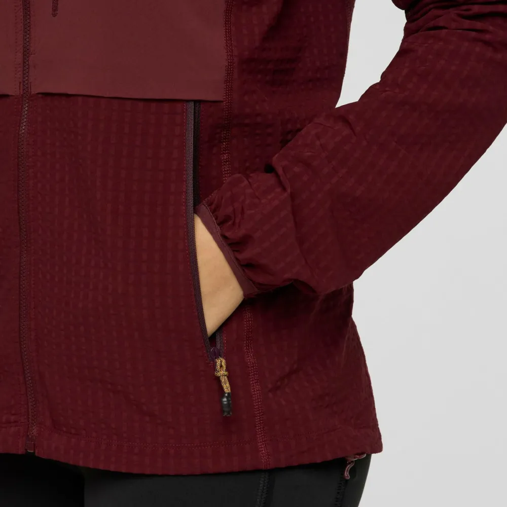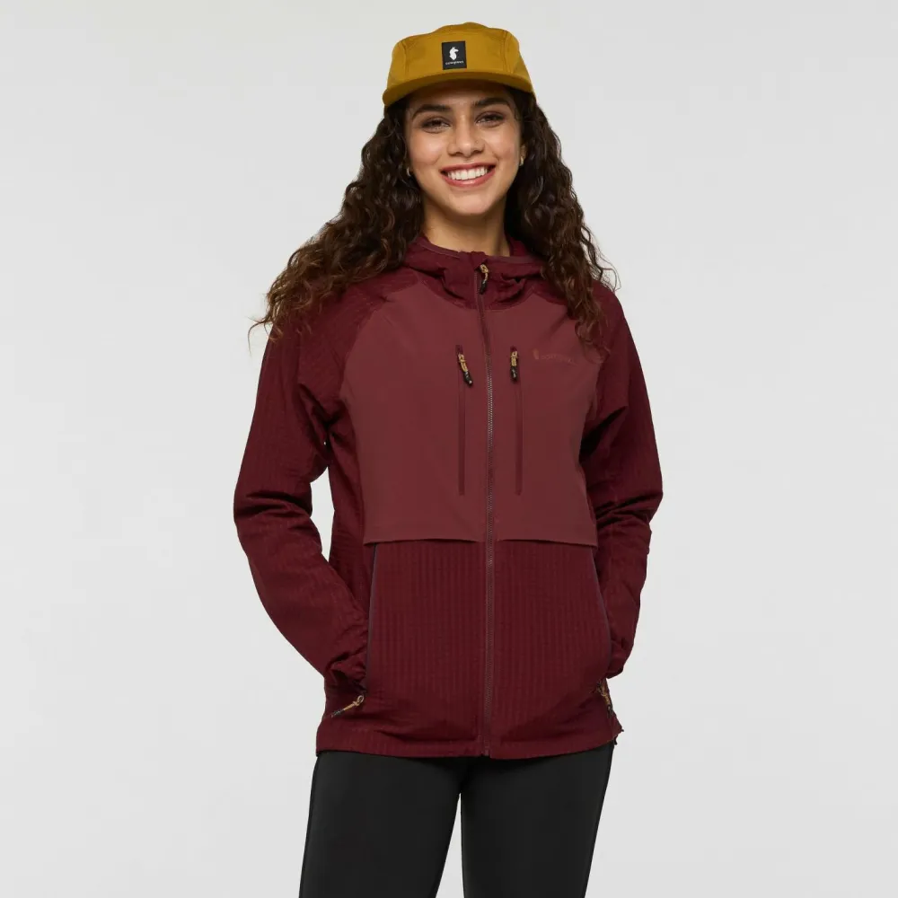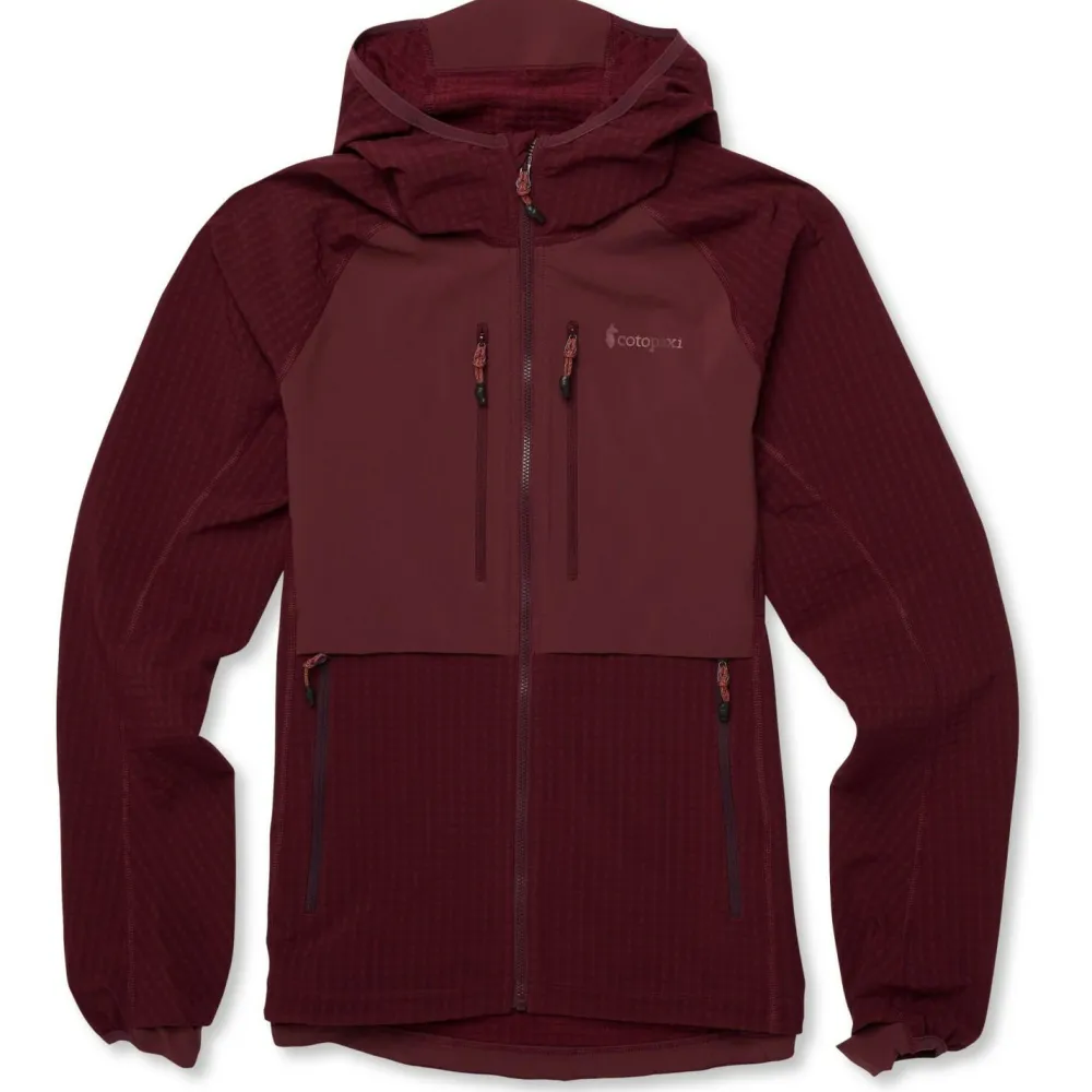 Die Women’s Yermo Hooded Jacket Softshelljacke von Cotopaxi überzeugt mit ihren wasserabweisenden, windabweisenden und atmungsaktiven Eigenschaften. Kurzen Regenschauer und feuchtem Morgennebel in den Bergen hält sie problemlos stand. Feuchtigkeit, die innen durch Schweiß entsteht, kann sie schnell nach außen abtransportieren. So hast Du den ganze Tag über ein angenehmes und trockenes Tragegefühl. In den vier Fronttaschen, die alle mit Reißverschlüssen gesichert sind, kannst Du Wertsachen und kleines Kartenmaterial oder Kletter Topos sicher und schnell erreichbar verstauen.