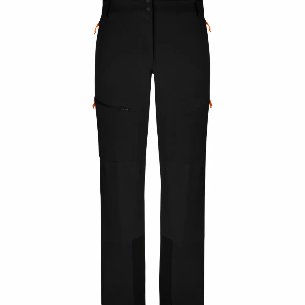 Dank Kantenschutz wird die Hose vor Beschädigungen bewahrt. Reißverschlüsse an den Beinenden erleichtern das Handling mit den Skistiefeln. Die ergonomischen Knie optimieren die Passform. Die Sella ist ideal für Skitouren!