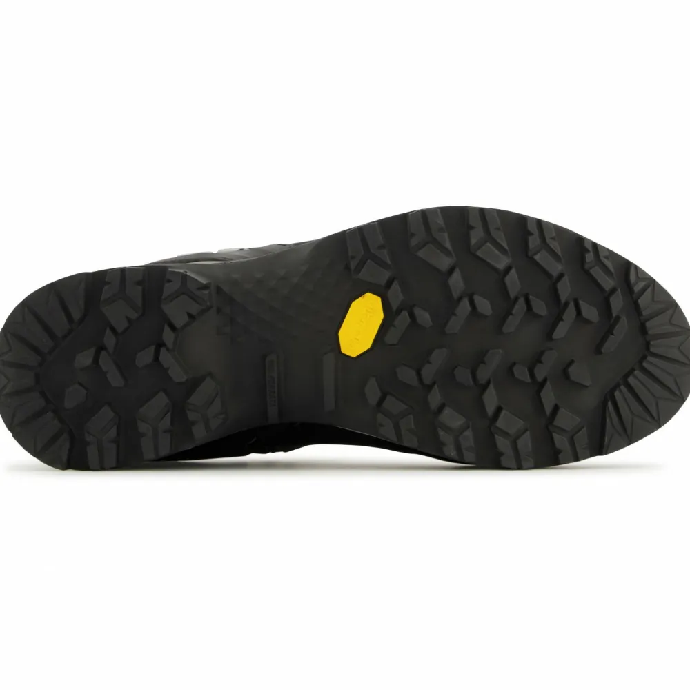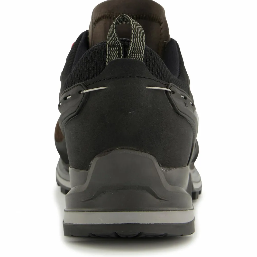 Durch das robuste Obermaterial aus Leder und einer rundum Vollgummi-Ummantelung bieten die Schuhe strapazierfähigen Tragekomfort und sehr guten Schutz vor Abrieb durch scharfe Kanten, Steine und Gestrüpp! Die 3F Schnürung verbindet die Sohle direkt mit dem Vorderfußbereich und der Ferse, so dass die Schuhe das Abrollverhalten unterstützen und Stabilität bieten. Die Vibram Laufsohle sorgt für einen sicheren Tritt auf felsigen, technischen Wegen und in jeglichem alpinem Gelände! Als besonderes Extra ist eine Kerbe in der Sohle angebracht, die den Halt auf Leitern und Krampen am Klettersteig verbessert.