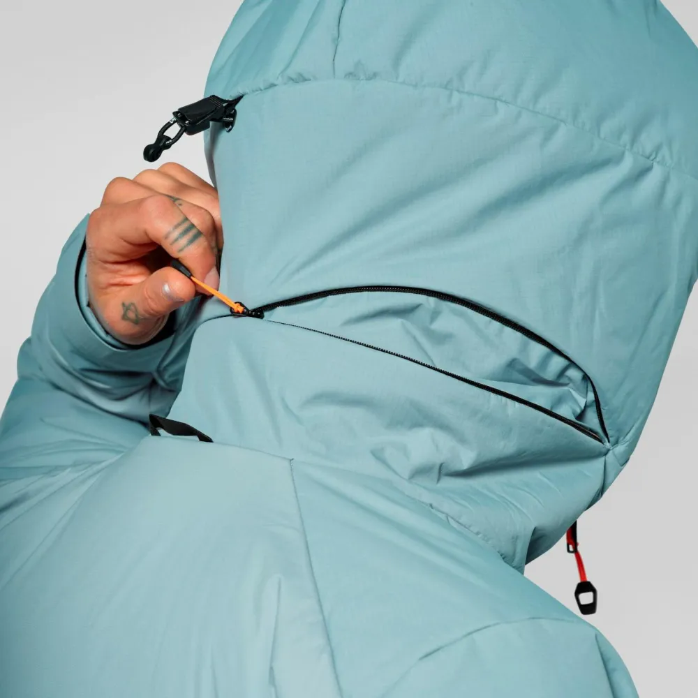 Gerade bei rauen Bedingungen zählt jedes Detail – und hier punktet die Women’s Ortles TW Air HD mit durchdachten Features. Powertex-Verstärkungen an besonders beanspruchten Stellen wie Schultern, Kapuze und Ärmeln schützen vor Abrieb durch Fels oder Rucksackträger. Die helmkompatible Kapuze sitzt auch bei Wind stabil, während der Zwei-Wege-Reißverschluss den Zugriff auf das Sicherungsgerät erleichtert – ein echtes Plus beim Standplatz. Auch die Ärmelabschlüsse sind clever gelöst: Sie lassen sich mit Klett regulieren und sind mit elastischen Innenbündchen mit Daumenschlaufen ausgestattet.