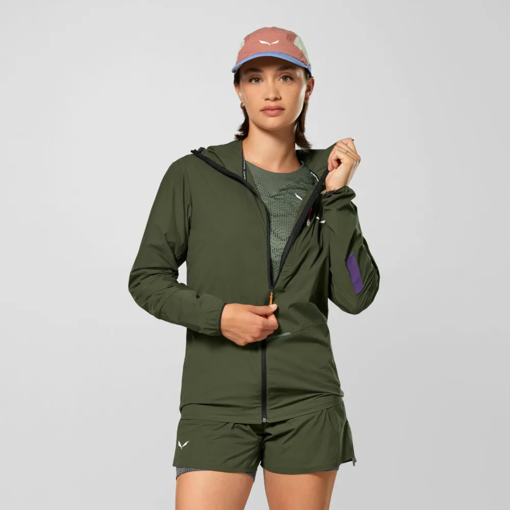 Die Salewa Women’s Pedroc Wind HD Light Jacket begleitet Dich als leichter Windbreaker auf schnellen Wanderungen, beim Speed Hiking oder Trailrunning. Dank winddichtem Softshell-Material und DWR-Imprägnierung perlt leichter Regen einfach ab, während atmungsaktive und schnelltrocknende Stoffe für ein angenehmes Körperklima sorgen. Elastische Ärmelbündchen und eine elastische Kapuze schützen zusätzlich vor kühlem Wind. Der durchgehende Front-Reißverschluss ermöglicht Dir, die Jacke schnell an wechselnde Bedingungen anzupassen. Belüftungseinsätze am Rücken verhindern Hitzestau, auch wenn Du richtig Tempo machst.