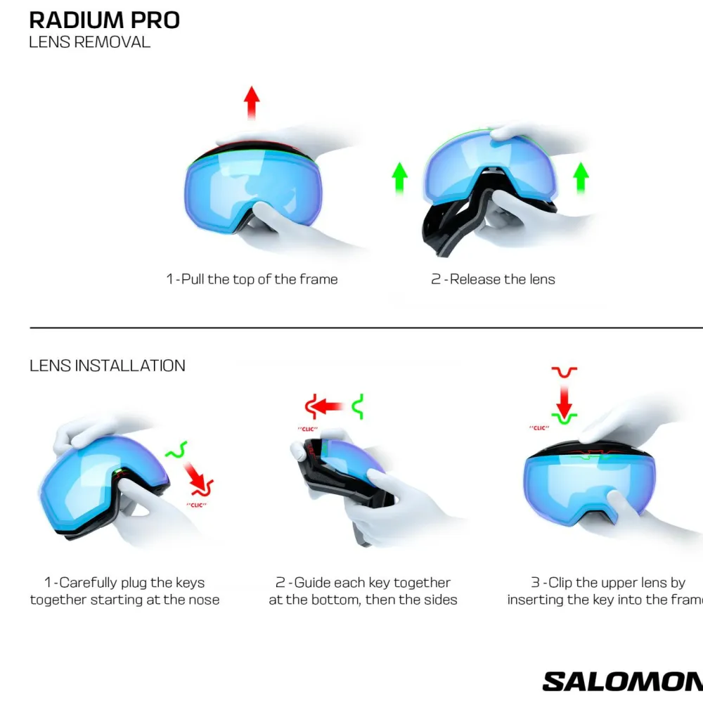 Mit der Salomon Radium Pro Sigma Skibrille bist Du für jede Wetterlage auf der Piste bestens gerüstet. Die innovativen Sigma-Gläser mit praktischem Wechselsystem ermöglichen Dir, blitzschnell zwischen Schutzklasse 1 und 3 zu wechseln – so hast Du bei Sonne wie bei Nebel immer die passende Tönung parat. Dank 100% UVA- und UVB-Schutz sind Deine Augen zuverlässig vor schädlicher Strahlung geschützt. Die Antifog-Beschichtung sorgt dafür, dass Deine Sicht auch bei wechselnden Temperaturen oder hoher Luftfeuchtigkeit klar bleibt. Besonders an Tagen mit diffusem Licht oder im Schneetreiben erkennst Du durch die kontrastverstärkenden Gläser Konturen und Unebenheiten im Schnee deutlich besser – das gibt Dir Sicherheit und ein Plus an Fahrspaß.