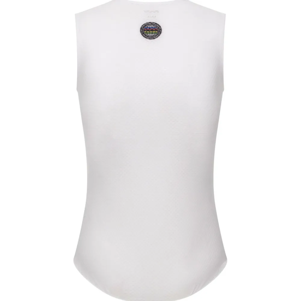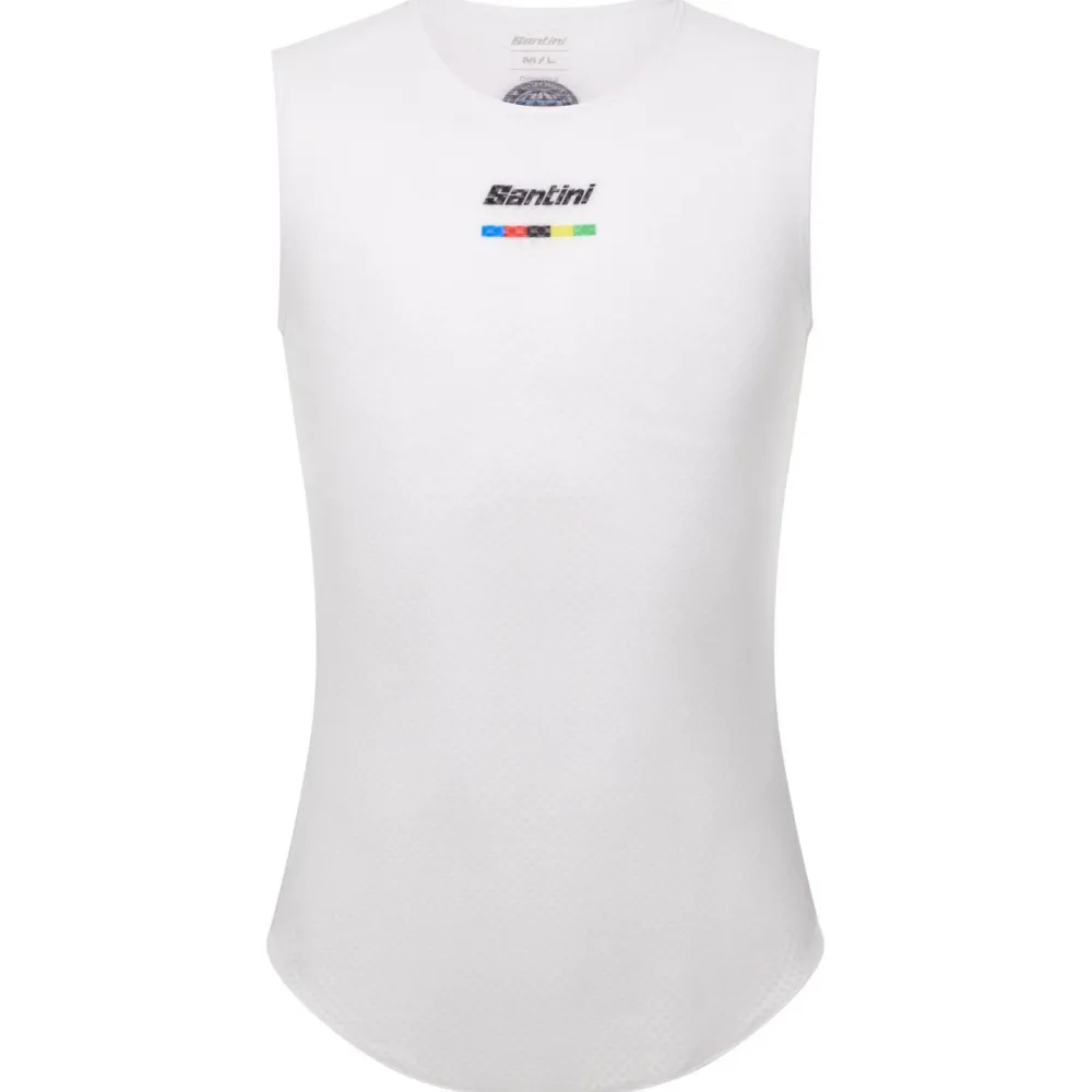 Elegant und funktionell präsentiert sich das UCI World Champion Baselayer Radunterhemd im weltmeisterlichen Look. Das ärmellose Shirt ist dafür mit einem kleinen Streifen in Regenbogenfarben und darüber mit einem mittigen Santini Logo verziert. Das atmungsaktive und schnelltrocknende Radunterhemd besteht aus Polyester und Elasthan. So ist es pflegeleicht und ausgesprochen bewegungsfreundlich. Das Shirt trägt sich perfekt als Baselayer unter dem Radtrikot.
