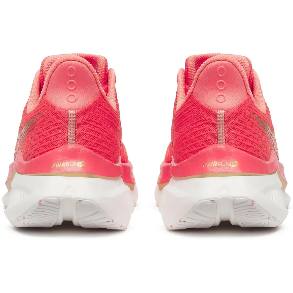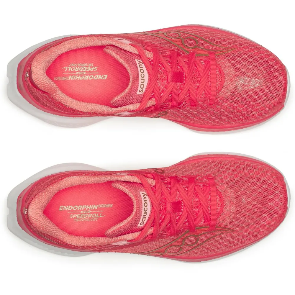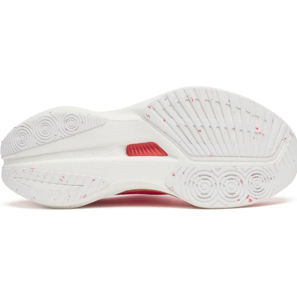 Mit dem Women’s Endorphin Speed 5 von Saucony erlebst Du, wie moderne Technologie Deinen Asphaltlauf auf ein neues Level hebt. Die PWRRUN PB-Zwischensohle besteht aus einem eigens entwickelten PEBA-Material-Gemisch und liefert Dir eine beeindruckende Energierückführung von 88 %, sodass jeder Schritt spürbar dynamischer wird. Die innovative Speedroll-Technologie unterstützt einen effizienten Abrollvorgang, während die integrierte Nylon Speed Plate für Stabilität und zusätzlichen Vortrieb sorgt. Dank der robusten XT-900 Carbon Rubber-Sohle genießt Du exzellenten Grip und Langlebigkeit – selbst bei schnellen Sprints oder langen Einheiten auf Asphalt. Mit einer Sprengung von 8 mm und einer komfortablen Stapelhöhe von 36 mm ist dieser Schuh optimal für ambitionierte Läuferinnen, die Wert auf Performance und Innovation legen.