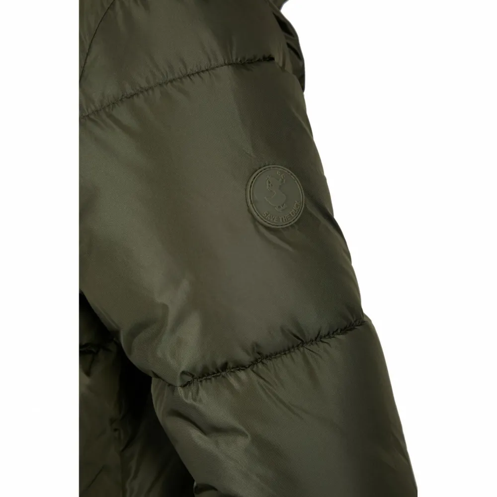 Bei Save the Duck steht vor allem die Auswahl an Materialien im Vordergrund, bei denen auf tierische Bestandteile verzichtet wird. Deshalb ist die Füllung aus leichter Kunstfaser, die jedoch der Wärmeisolationsleistung von echten Daunen in nichts nachsteht. Des Weiteren ist das Außenmaterial sehr strapazierfähig und kann leichte Nässe abweisen. Zudem machen Kunstfasern den Mantel sehr pflegleicht.