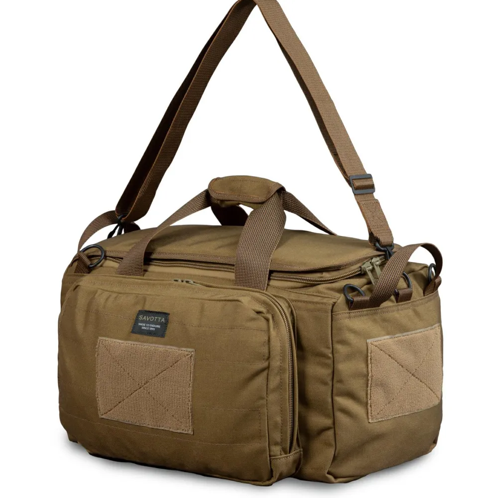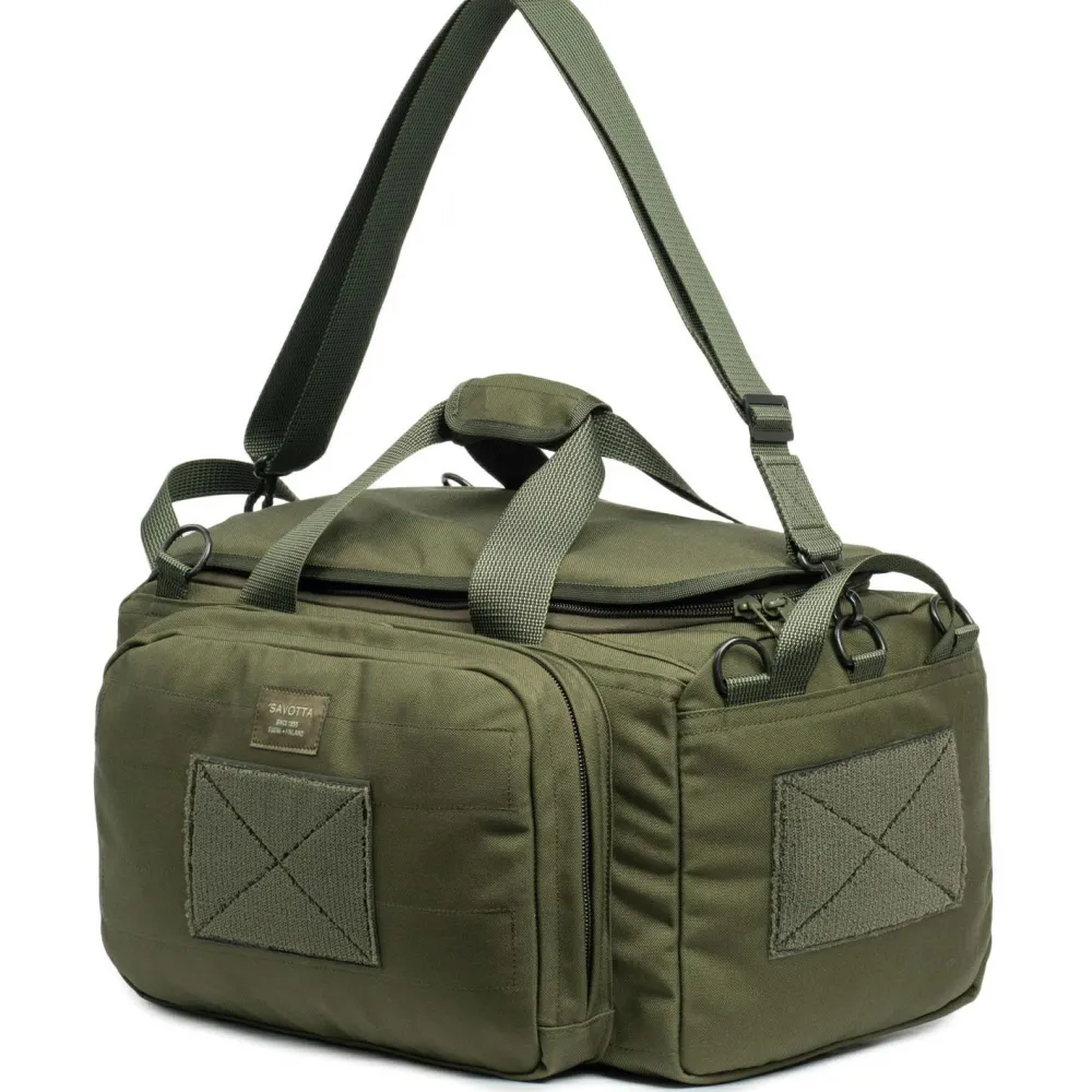 Vielseitig, praktisch und unverwüstlich: die Keikka 30 Reisetasche von Savotta! Diese äußerst komfortable und modular aufgebaute Duffelbag ist für den vielseitigen Einsatz und täglichen Gebrauch bei Arbeit, Sport und Reise entworfen. Dafür bietet sie diverse Tragemöglichkeiten mit Griffen, Schultergurt, Verladeschlaufen und Befestigungspunkten für Rucksack-Tragegurte. Hinzu kommt neben inneren und äußeren Taschen und Fächern die Kompatibilität mit verschiedenem Zubehör zum Einkletten und Einhaken, mit dem die Organisation des Innenbereichs perfektioniert werden kann. Zu den kleinen aber feinen Details der Keikka Reisetasche gehören robuste Stahlschnallen, Laschen zur Befestigung von Ausweisen und Patches und das herausnehmbare Futter im Deckel und im Boden!