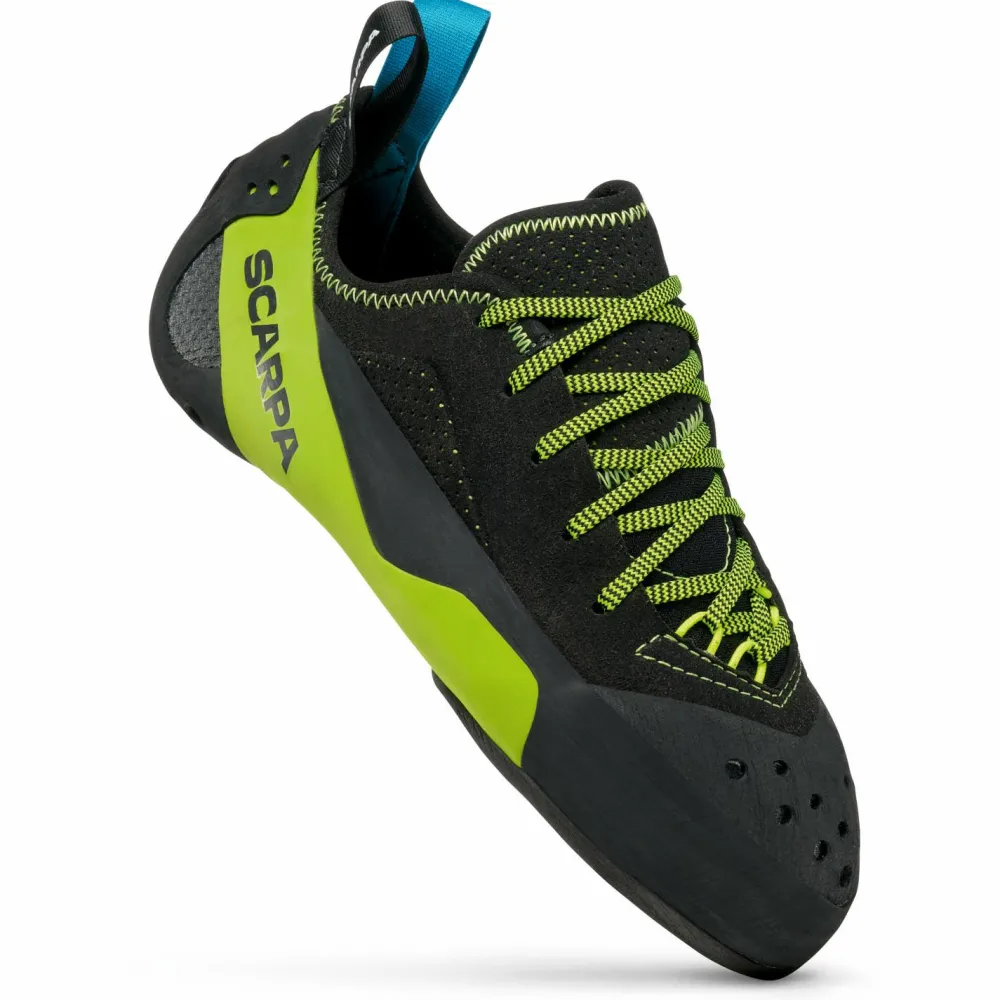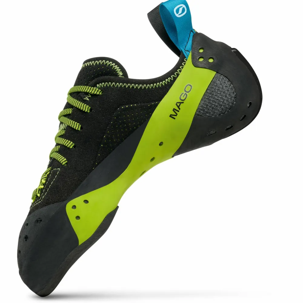 Die Mago Kletterschuhe von Scarpa sind die perfekten Schuhe für’s Sportklettern, wenn es auf maximale Präzision ankommt. Die Kombination aus aggressivem Downturn, einem stark asymmetrischen Leisten und der 3,5 mm dicken Vibram XS Grip2 Sohle gibt Deinen Füßen maximalen Halt und uneingeschränkte Kraftübertragung bei schwierigen Stellen. Die Mago Kletterschuhe sorgen mit ihrer Mikrofaseroberfläche und den zusätzlichen Belüftungslöchern im Gummi für eine tolle Luftzirkulation. Außerdem haben sie eine schmale Passform.