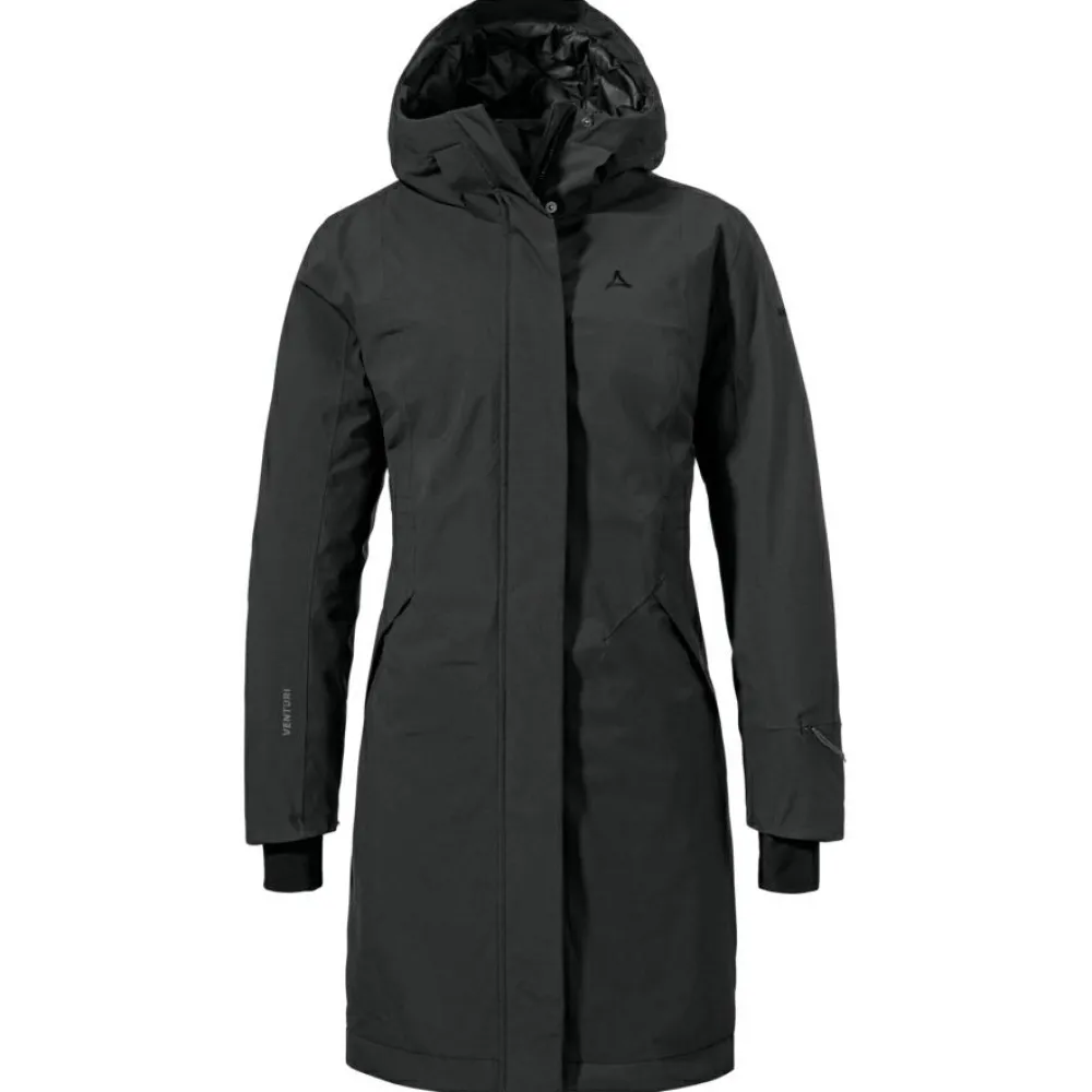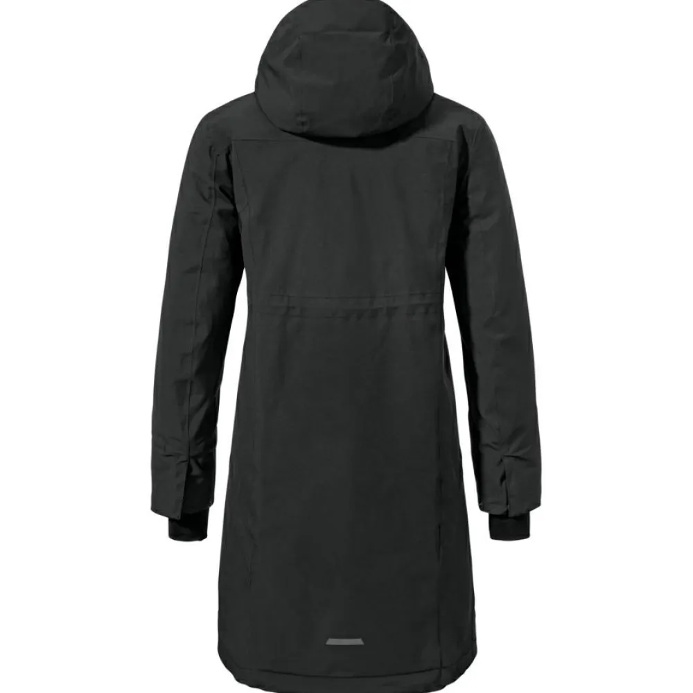 Der Women’s Insulated Coat Gregale Wintermantel von Schöffel sieht nicht nur gut aus, sondern ist auch hochfunktional!Mit der Wassersäule von 10 000 mm ist er wasserdicht und dennoch atmungsaktiv. Das heißt, Du kommst auch nicht ins Schwitzen, wenn Du mit dem Fahrrad in der Stadt fährst.Die kuschelige Kapuze und der hohen Stehkragen können Wind und Wetter trotzen. Auch der Reißverschluss ist mit einer Windabdeckleiste geschützt, die Du mit einer zusätzlichen Knopfleiste fixieren kannst. Somit hat die Kälte keine Chance auf ein Eindringen!Zu Deiner Sicherheit ist der Women’s Insulated Coat Gregale mit reflektierenden Details an der Ärmeltasche ausgestattet, sodass Du auch in der Dämmerung im Straßenverkehr gut sichtbar bist.