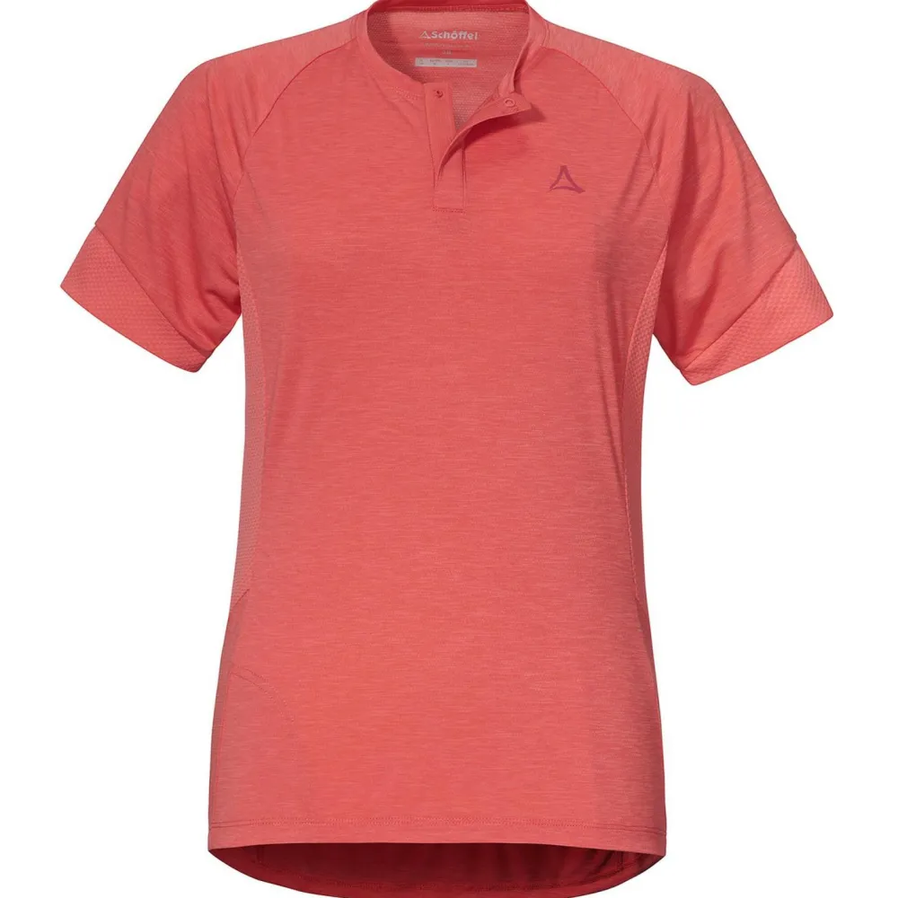 Das Women’s Shirt Auvergne von Schöffel ist ein atmungsaktives Radtrikot mit innovativen Technologien. Hier wird auf die SCafe Technologie zurückgegriffen, bei der Kleidungsfasern mit recyceltem Kaffeesatz behandelt werden um geruchshemmende und schnelltrocknende Eigenschaften zu erzielen. So bleibt das Shirt länger frisch und angenehm zu tragen. Außerdem besitzt es eine zweifache Rückentasche, denn eine kann mit einem Reißverschluss verschlossen werden und die andere ist offen und so schnell während der Fahrt erreichbar. Als besonders praktisch erweist sich das integrierte Brillenputztuch auf der Sauminnenseite.