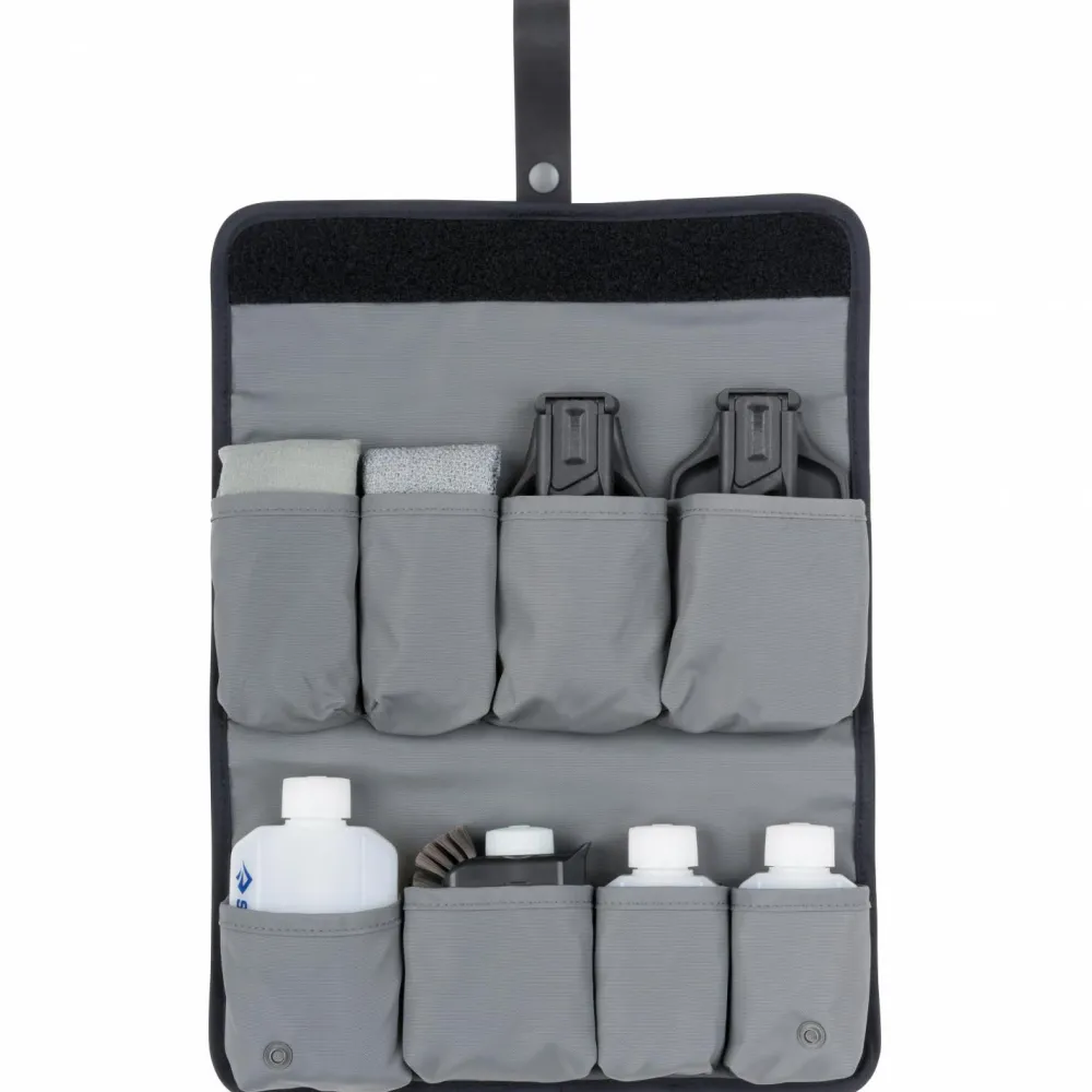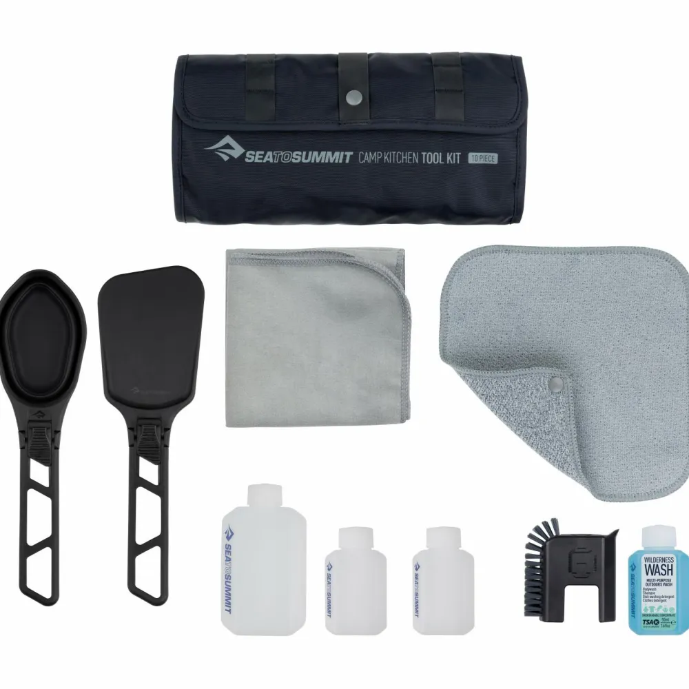 Deine Campingküche ist mit dem Camp Kitchen Tool Kit von Sea to Summit gut ausgestattet! Im praktischen Packsack lässt sich alles gut verstauen. Praktisch für Öl und Gewürze sind die drei wiederverwendbaren Flaschen. Zum Reinigen verwendest Du die biologisch abbaubare Seife und die effektive Bürste. Ein toller Allrounder für Camper!