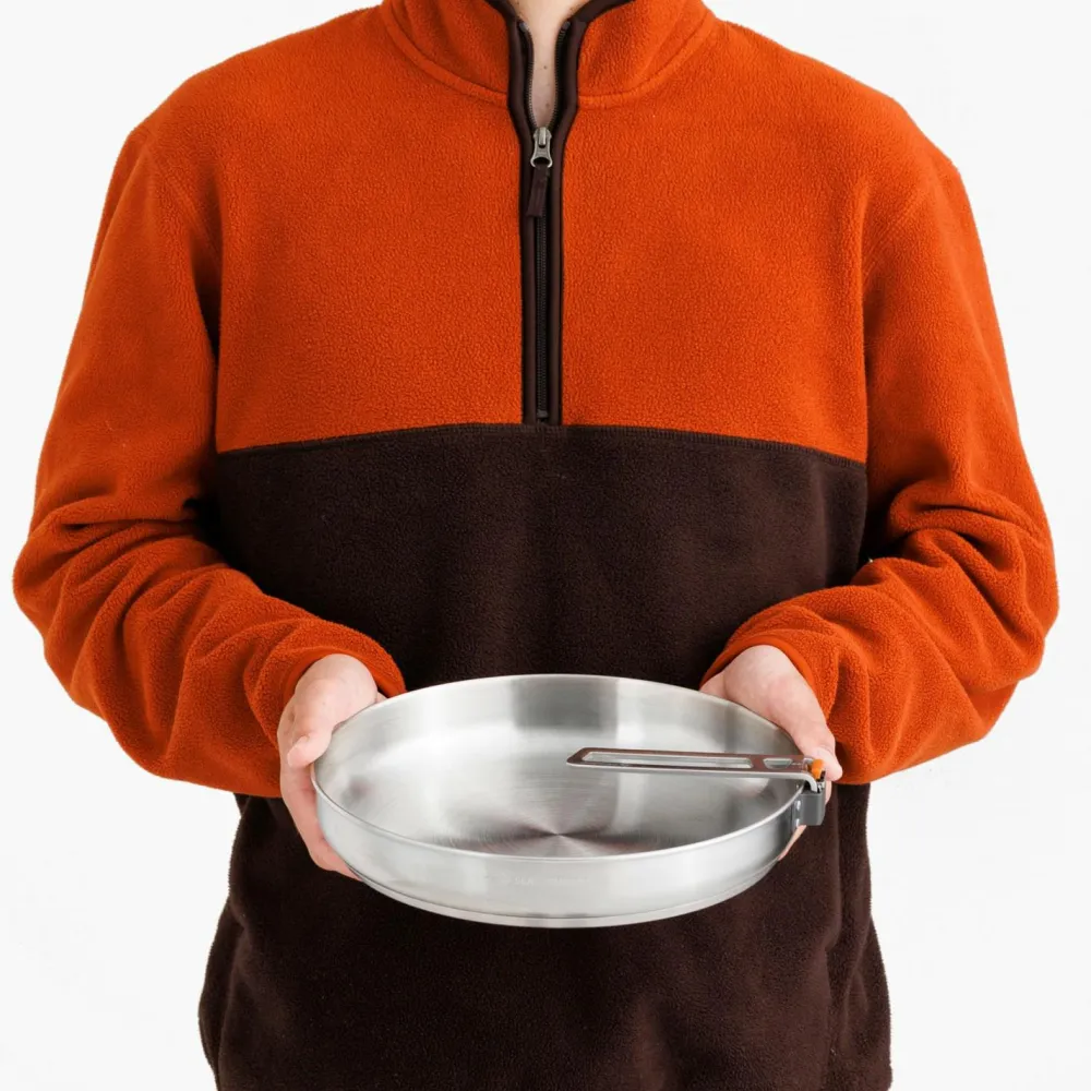 Die Detour-Campinggeschirr-Serie von Sea to Summit besteht aus einer Reihe von unverzichtbaren Begleitern für Camping-Ausflüge und Trekking-Touren, und der Detour Stainless Steel Pan macht da keine Ausnahme. Kompakt dimensioniert (Durchmesser 25,4cm) und mit abnehmbarem Griff bietet die Pfanne ein geringes Packmaß und Gewicht, sodass der Transport auch im Rucksack kein Problem ist. Außerdem ist die dreilagig konstruierte, mit einem hochleitfähigen Aluminiumkern ausgestattete Detour Stainless Steel Pan sowohl mit Gasherden als auch Induktionskochfeldern kompatibel.