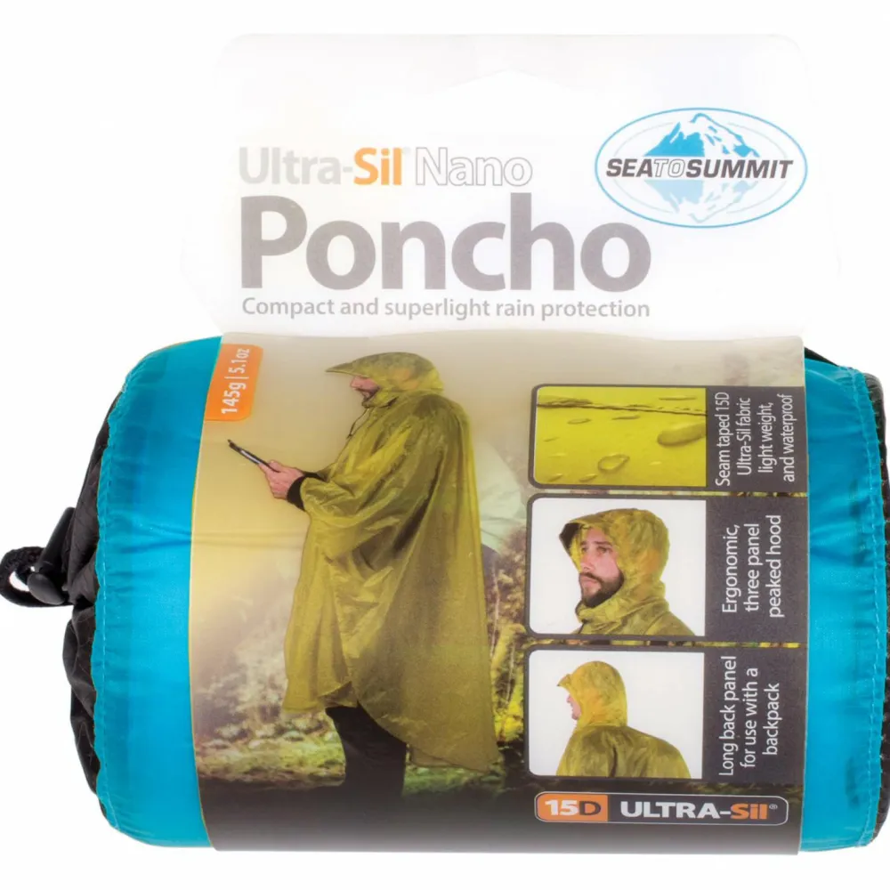 Klein, leicht und wasserdicht – das ist der Ultra-Sil Nano Poncho von Sea to Summit. Der Regenponcho besteht aus dem hauseigenen 15D Ultra-Sil Material mit durchgehend getapten Nähten und hält damit auch bei den stärksten Regenfällen zuverlässig dicht. Der Poncho ist ideal für warme Bedingungen, da er durch seinen sehr weiten Schnitt ausreichend Belüftung garantiert. Durch die seitlichen Druckknöpfe können die Seiten wahlweise geöffnet oder geschlossen werden, je nachdem wie stark der Regen oder wie warm es gerade draußen ist. Durch das sehr kleine Packmaß und das geringe Gewicht findet der Poncho Platz in jedem Rucksack und kann so als Notfall-Regenjacke immer dabei sein.