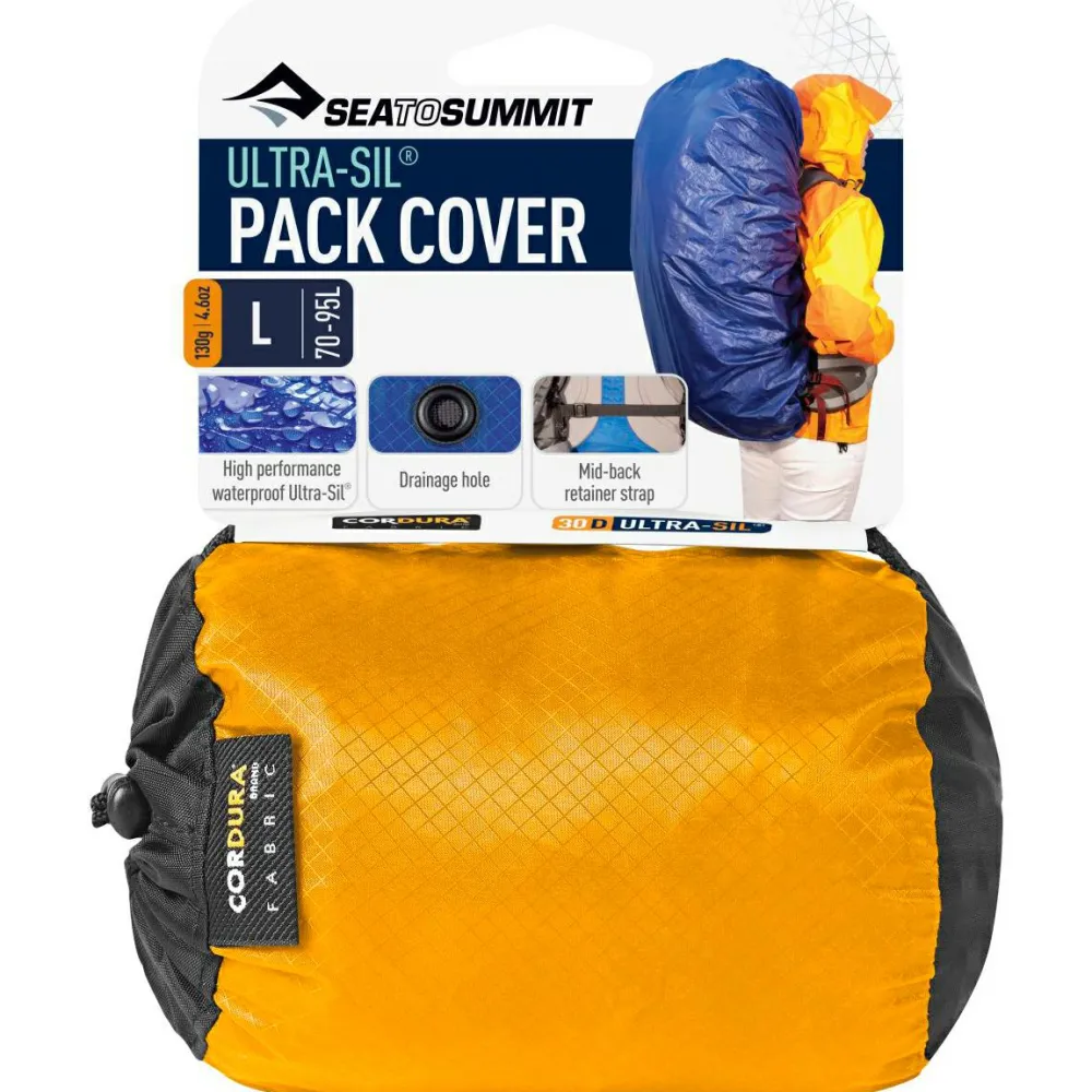 Schützt den Rucksackinhalt zuverlässig vor Nässe – das UltraSil Pack Cover von Sea to Summit. Die ultraleichte Regenhülle ist erheblich leichter als die meisten mitgelieferten Regenhüllen und bietet dabei einen optimalen Nässeschutz. Das ultraleichte 30D UltraSil Cordura Material bietet außerdem eine hohe Reißfestigkeit. Erhältlich ist die Hülle in 5 Größen, die vom kleinen Daypack bis zum Riesen-Trekkingrucksack reicht.