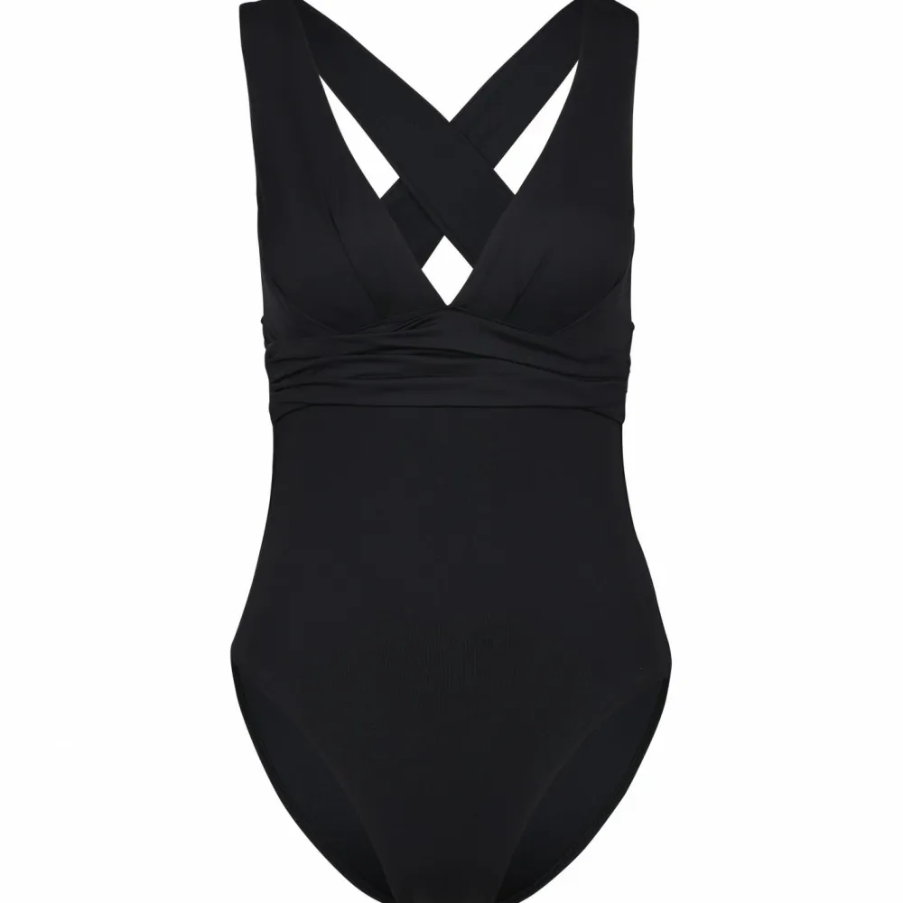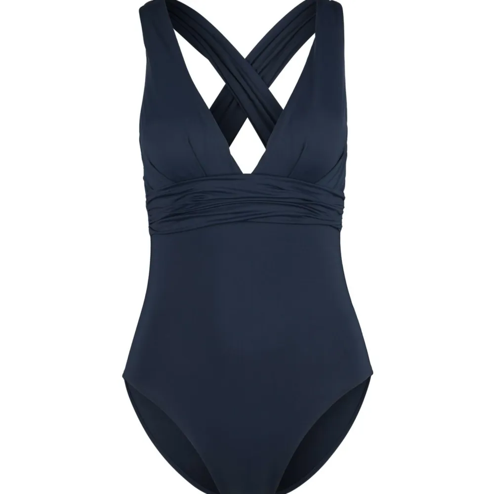 Im Women’s Collective Cross Back One Piece von Seafolly fühlst Du Dich an warmen Tagen am Strand oder am Pool besonders wohl. Der gekreuzte Rücken mit breiten Trägern, ein tiefer Ausschnitt, sowie eine Raffung unter der Brust machen den Badeanzug zu einem echten Hingucker.