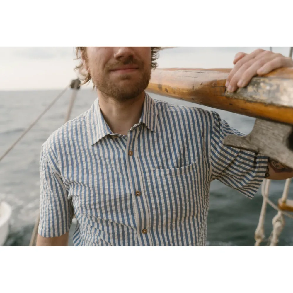 Das kurzärmelige Hemd Seer Sucker Short Sleeve Shirt von LAKOR ist komplett aus Bio‑Baumwolle gefertigt und überzeugt mit seiner angenehm weichen Haptik und einer luftigen Struktur, die besonders an warmen Tagen für hohen Tragekomfort sorgt. Der umweltfreundliche Stoff fühlt sich nicht nur gut auf der Haut an, sondern bietet außerdem besonders hautfreundlichen Tragekomfort – perfekt für Alltag, Urlaub oder entspannte Freizeitlooks.