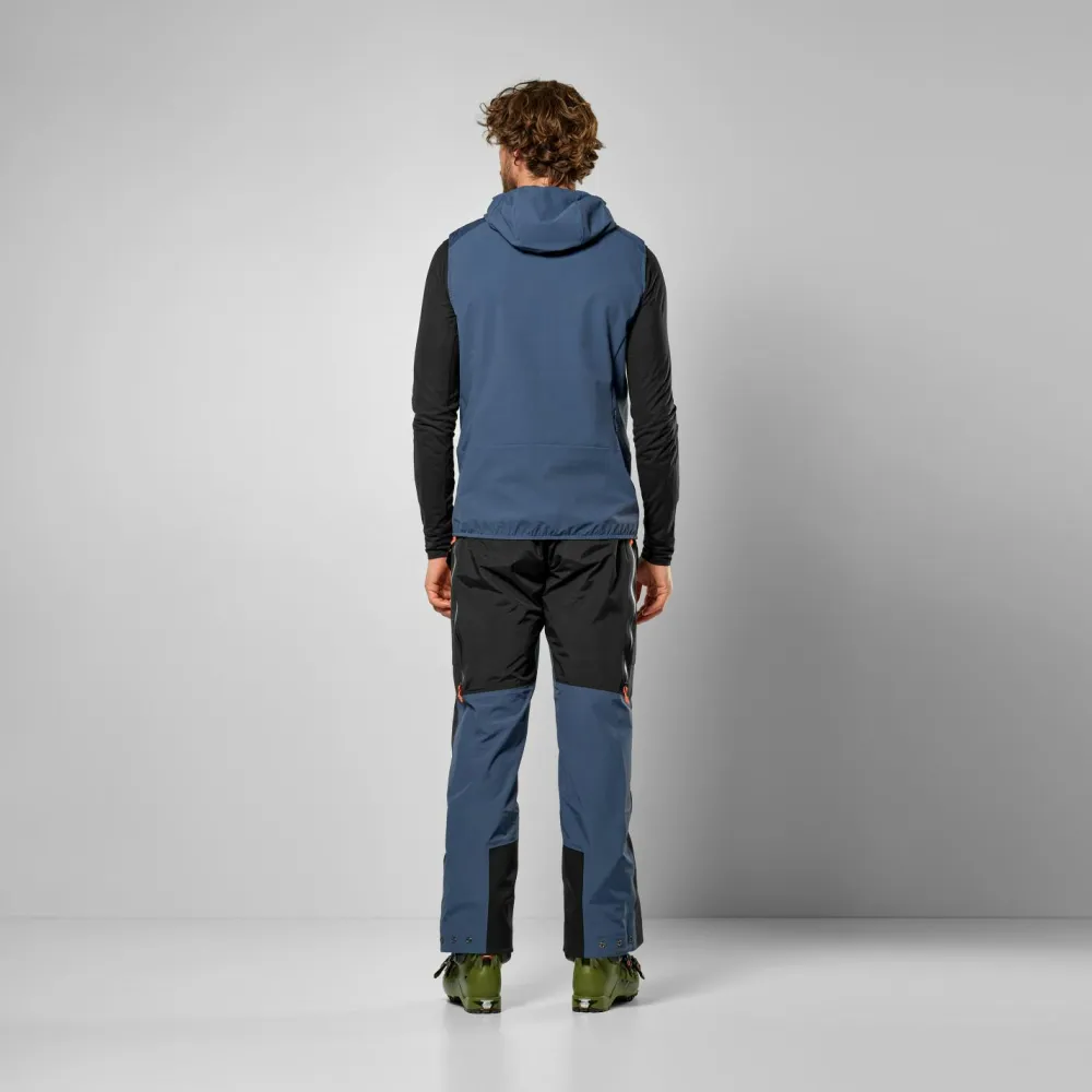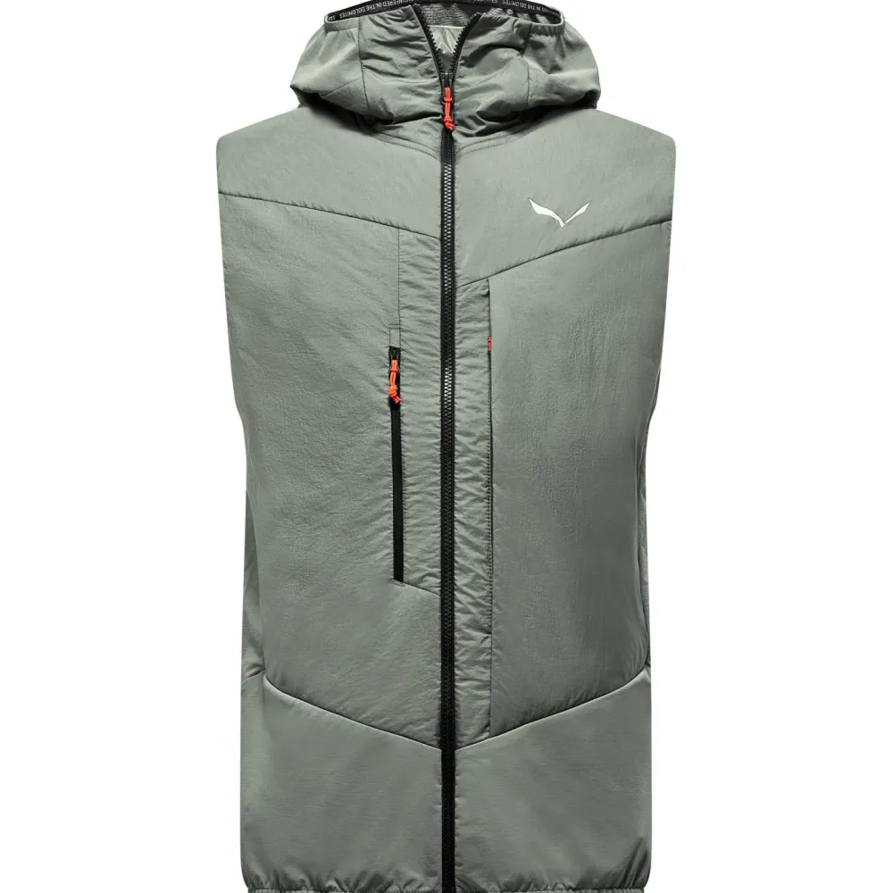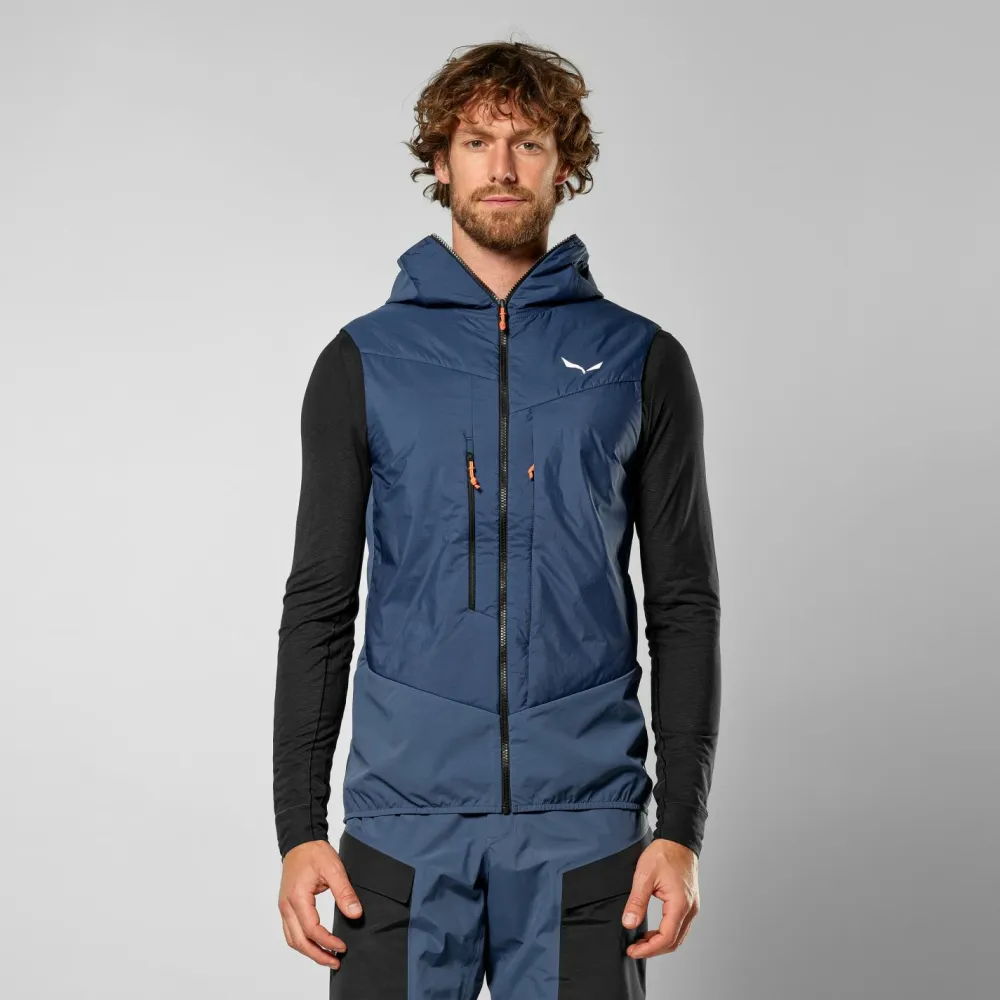 Salewa stattet die Sella DST/TWR Hybid Vest Merinoweste mit hohem Kragen und anliegender Kapuze aus. So kann die funktionelle Weste auf Skitour auch bequem unter dem Helm getragen werden. Die Weste besteht aus einer funktionellen Materialkombination mit Merinowolle, Polyamid und Elasthan. Das macht sie nicht nur warm, sondern auch sehr bewegungsfreundlich.