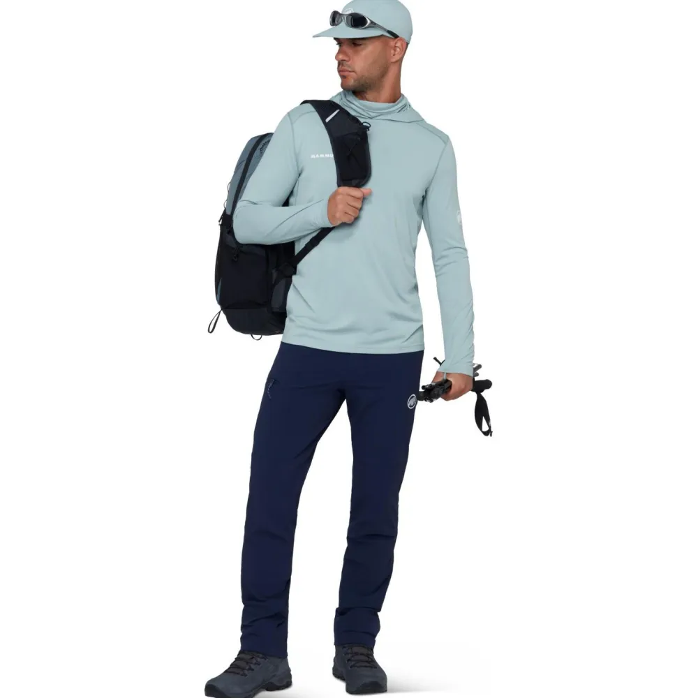 Der Selun FL Sun Hoody von Mammut bringt kühlen und trockenen Tragekomfort für sonnenreiche Bergausflüge. Das leichte und atmungsaktive Funktionsshirt besteht aus vollständig recyceltem Polyester und schützt mit hohem UV-Schutzfaktor vor der Gebirgssonne. Daumenschlaufen und eine Kapuze mit hochziehbarem Kragen schützen zusätzlich die Hände und das Gesicht. Dazu kommt eine biobasierte HeiQ-Fresh-Behandlung, die Gerüche hemmt, auch wenn man länger unterwegs ist. All das macht das Selun FL Longsleeve zu einem zuverlässigen Begleiter für sommerliche Outdoor-Abenteuer!